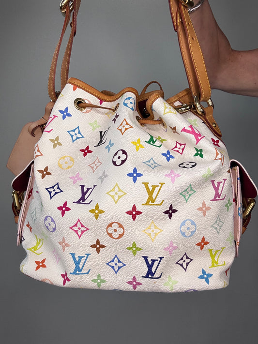 Louis Vuitton Takashi Murakami White Petit Noe Bag