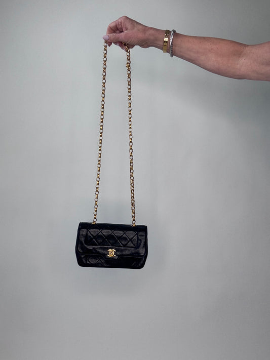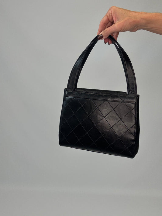 Chanel Vintage Quilted Lambskin Leather Handbag - Black