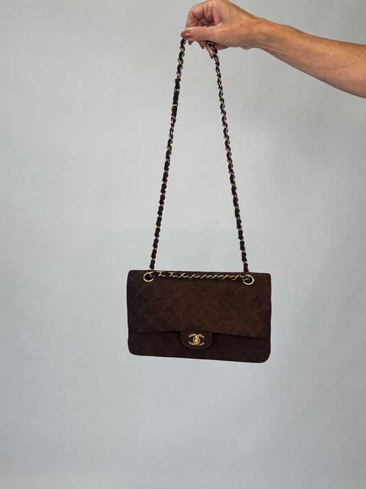 Chanel Brown Quilted Suede Double Flap - Vintage