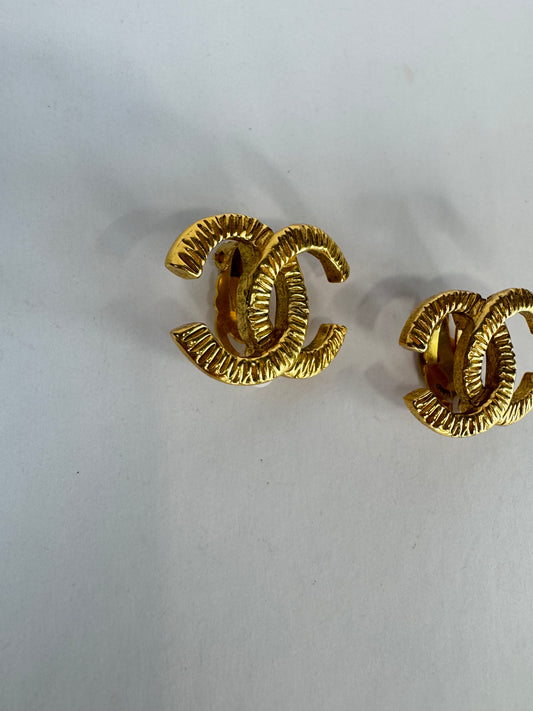 Chanel 1980 Hammered CC Logo Earrings