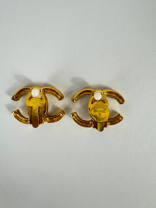 Chanel Vintage 1995 Turn Lock Clip on Earrings