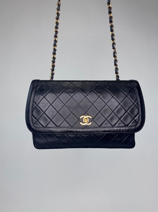 Chanel Lambskinskin Matelasse Top Handle with Top Turn Lock - Black