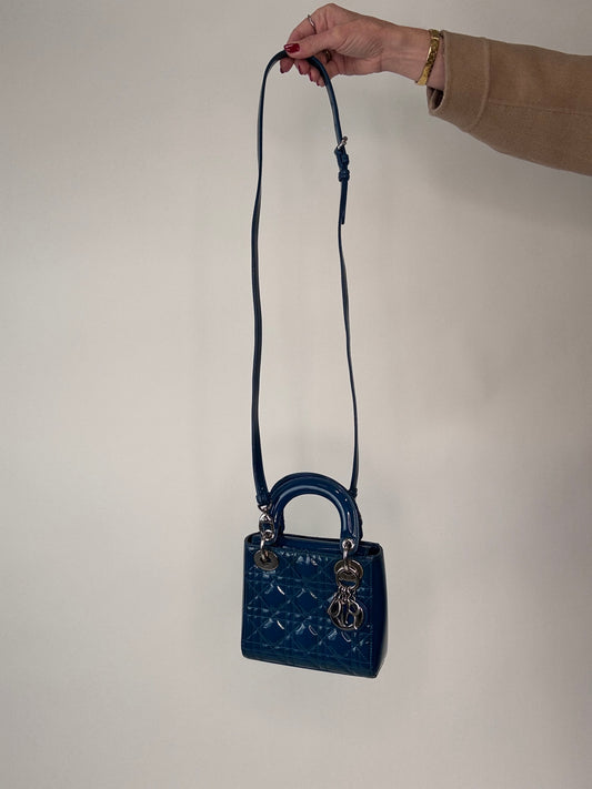 Christian Dior Mini Lady Cannage Patent Leather - Blue