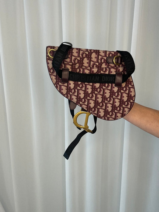 Christian Dior Oblique Mini Saddle Bag - Burgundy