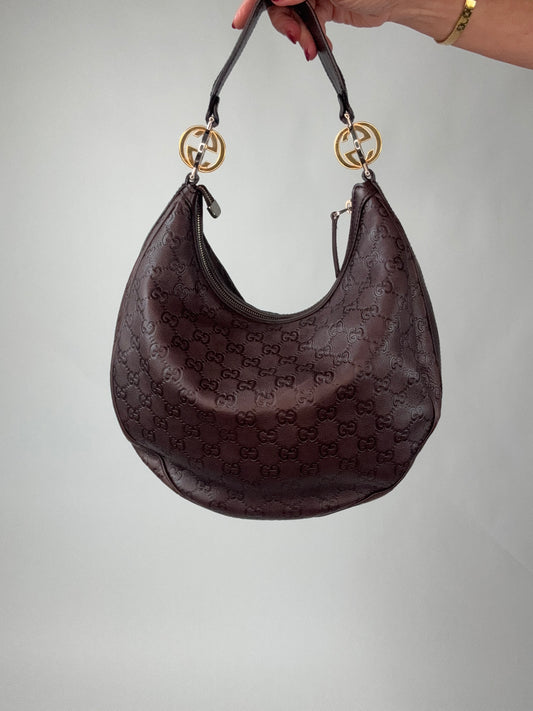 Gucci Brown Leather Guccissima GG Twins Hobo