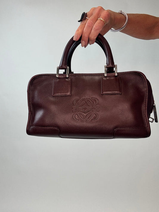 Loewe Amazona 28 Calfskin Leather Satchel - Burgundy Brown