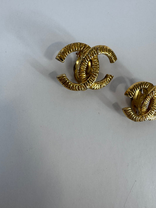 Chanel Vintage Hammered Clip On Earrings