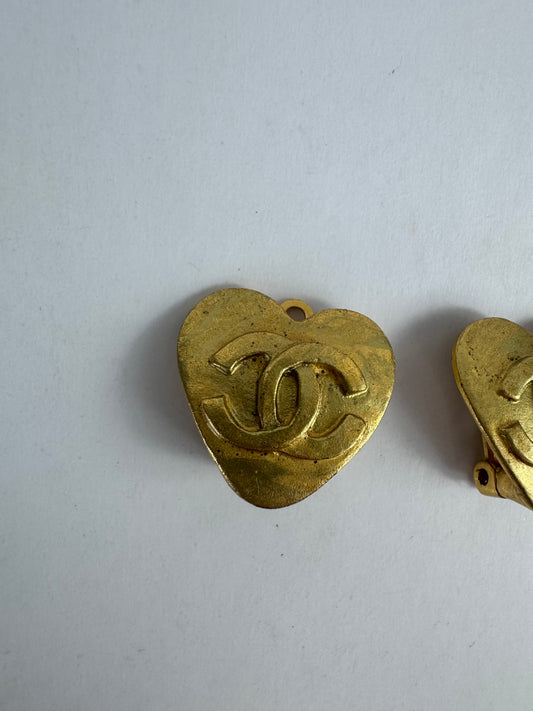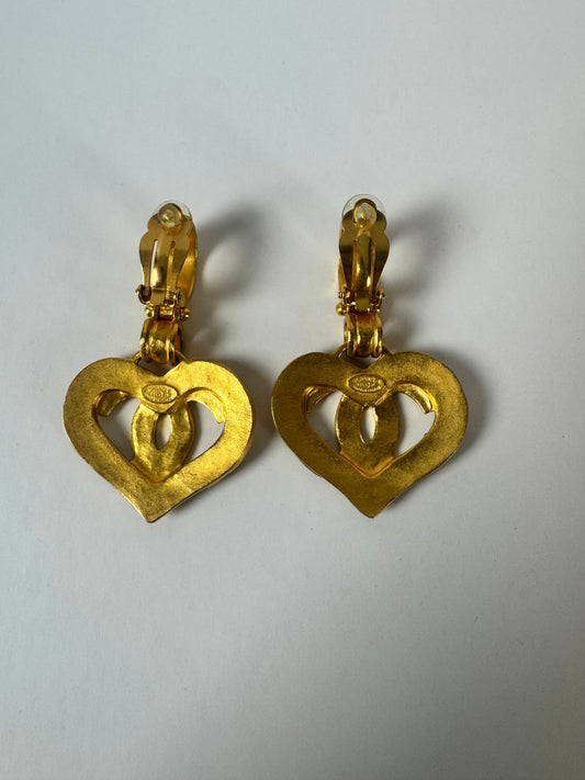 Chanel Vintage Heart Clip On Earrings