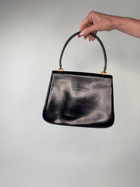 Gucci Rare Vintage Turn Lock Top Handle Calf Ski Bag