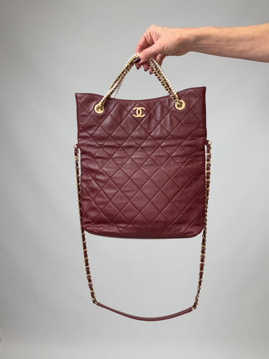 Chanel Fold-Over Shopping Tote Pearl Chain