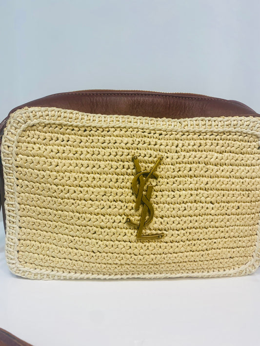 YVES SAINT LAURENT Shoulder Bag Straw / Leather Brown