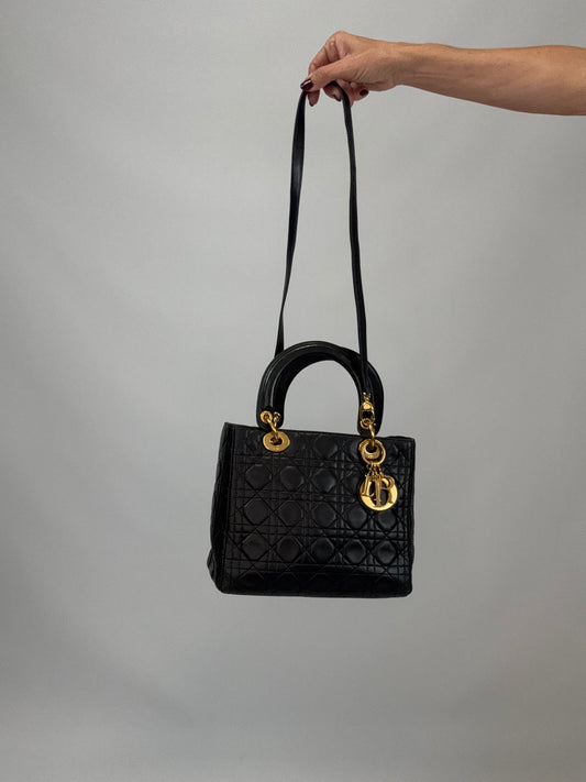 Christian Dior Lambskin Cannage Medium Lady Dior - Black