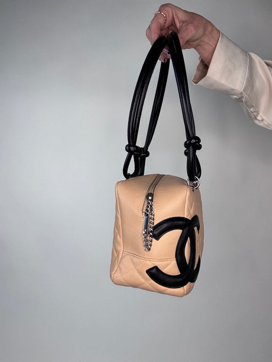 Chanel Calfskin Quilted Cambon Pochette - Beige / Black