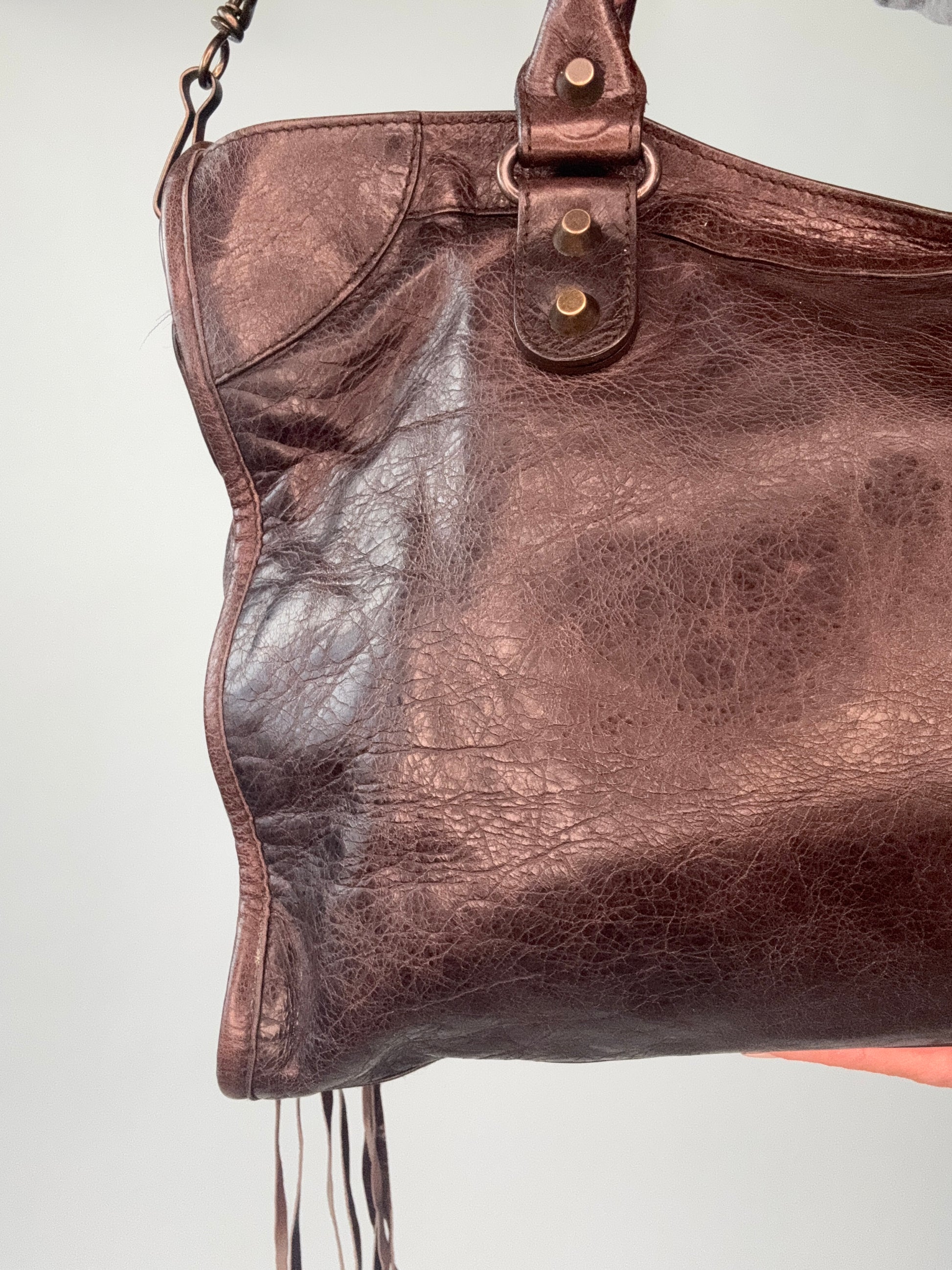 Classic City bag with mirror and tassels , distressed goatskin leather with slouch! wear anytime any wear, top handle or strap for shoulder bag