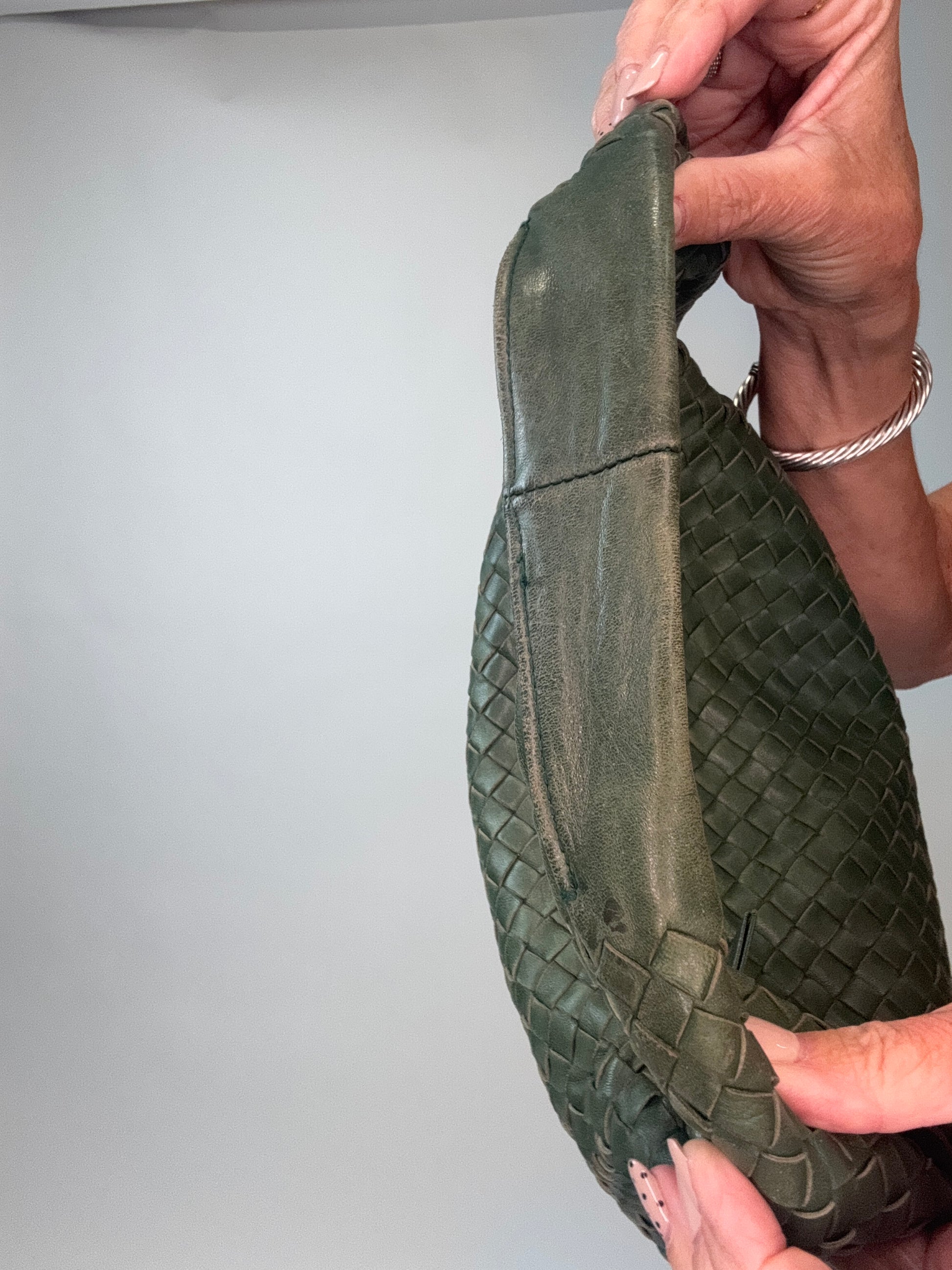 Enjoy this pop of beautiful color with this authentic preowned Bottega Veneta Intrecciato Hobo shoulder bag! Designed in a stunning deep green making it perfect for fall and winter. This gorgeous bag can be worn with any look and perfect for everyday! It also fits all your essentials