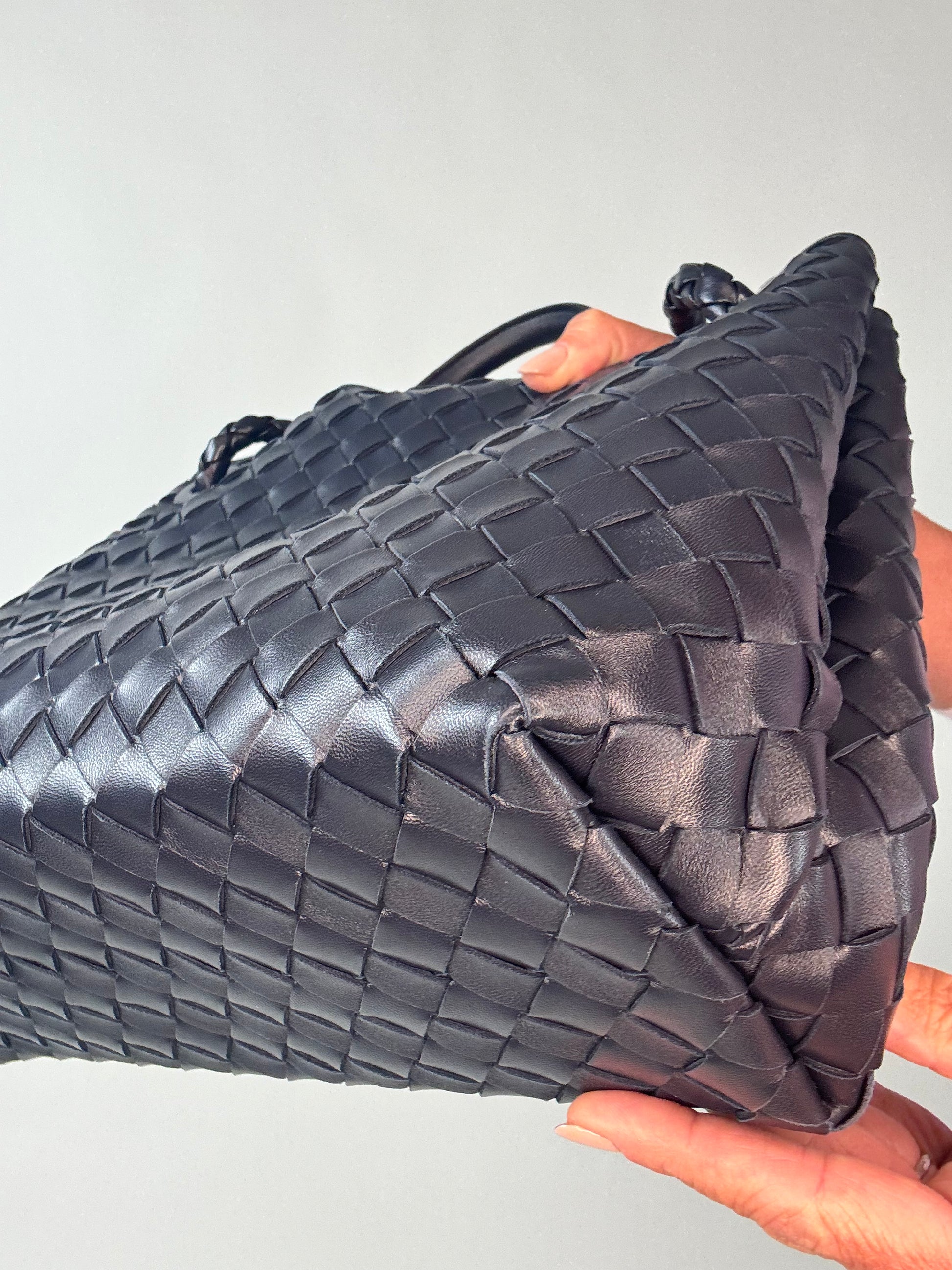 This stunning preowned Bottega Veneta Andiamo in navy blue is just the right touch to any outfit. Designed beautifully with Intrecciato leather in a medium size, this handbag and can work as a crossbody and shoulder bag as well. The interior is sectioned with compartments to make the organization of your items easy. This beautiful handbag is perfect for all seasons!