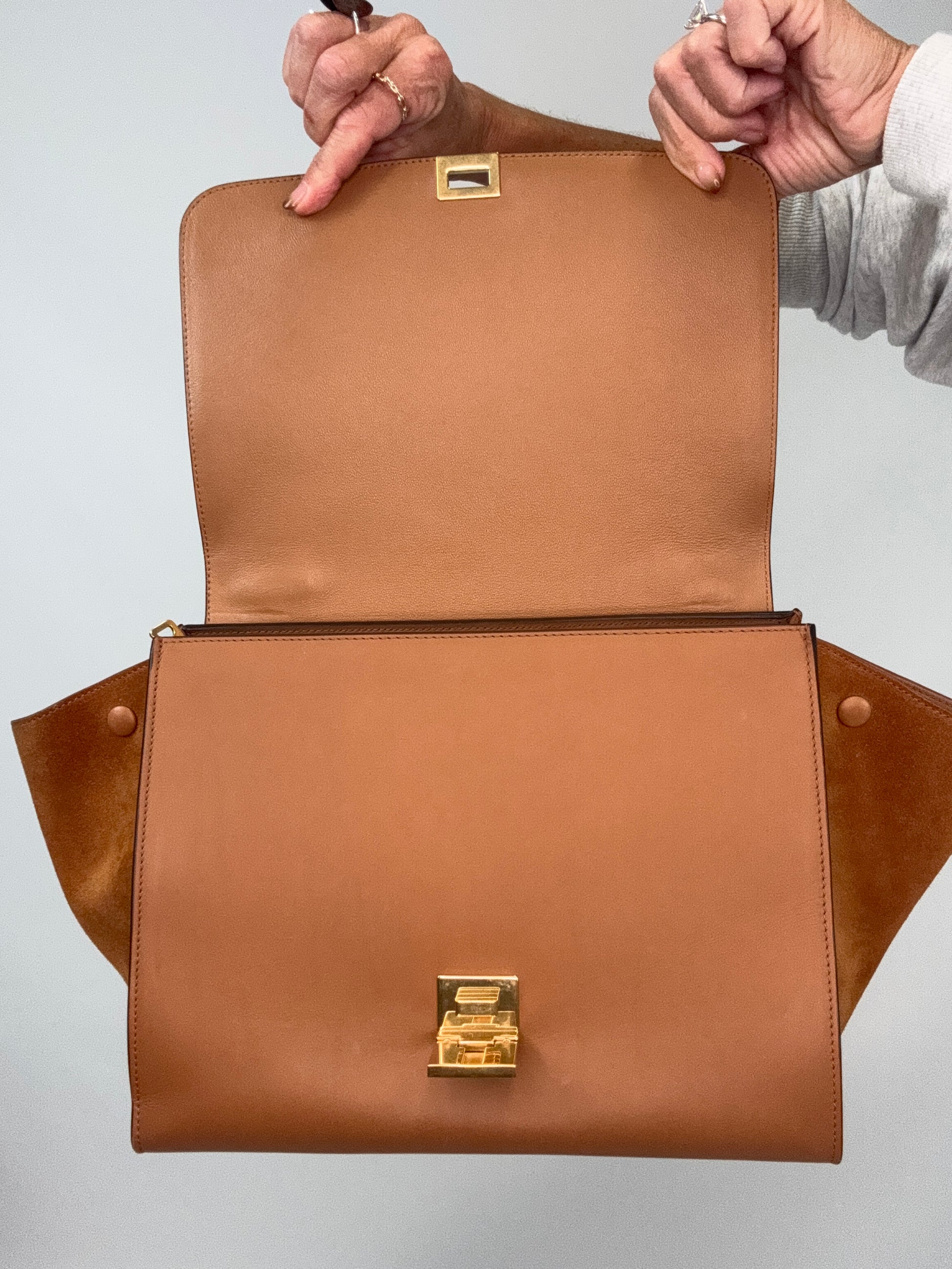 Celine Trapeze Leather Medium Bag - Carmel Brown