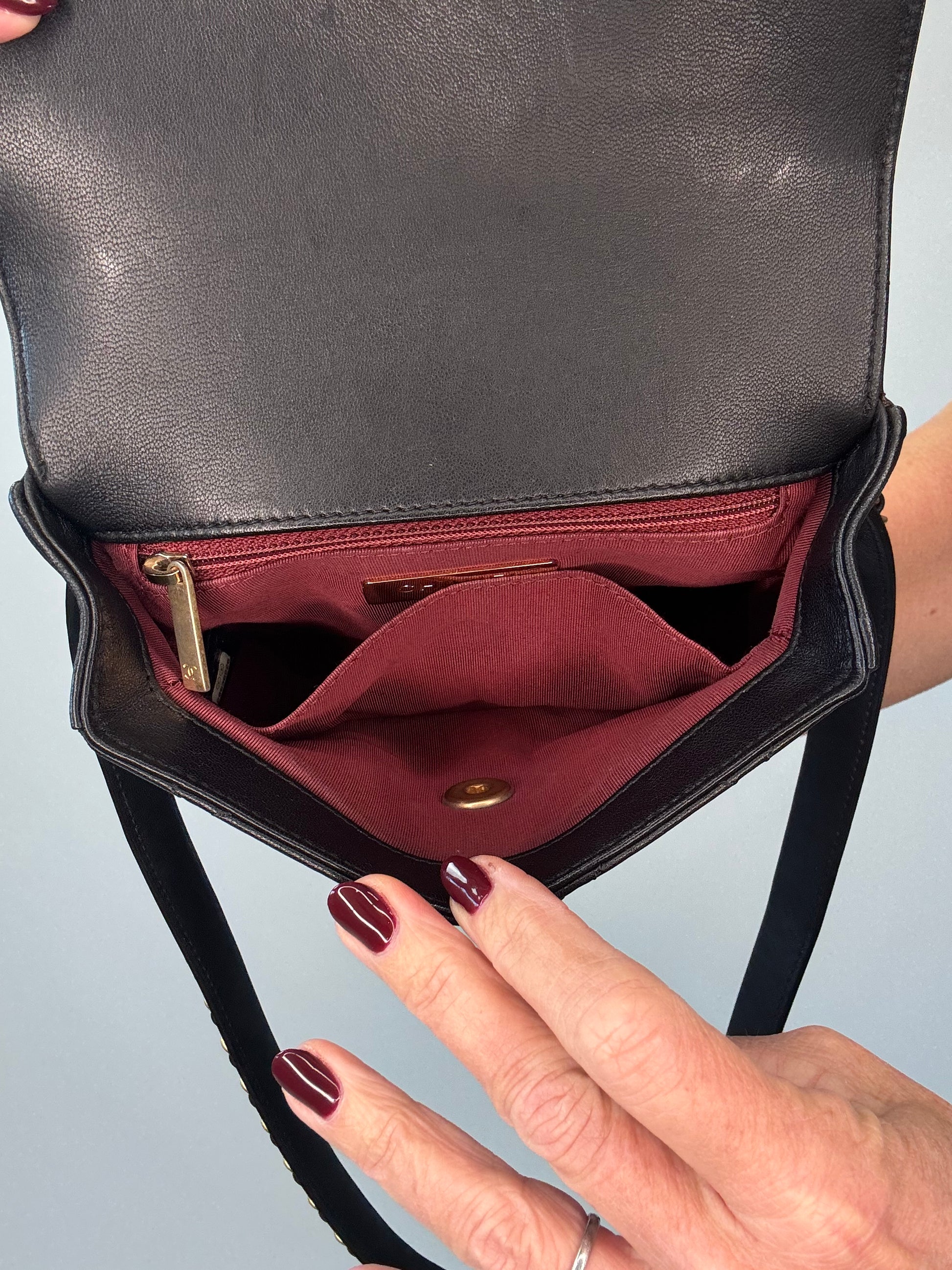 Timeless, versatile and handsfree while effortlessly chic! Wear as belt bag or bum bag, Adorned with classic turn lock and chain belt. Fits pro max phone or pro phone and small daily essentials.