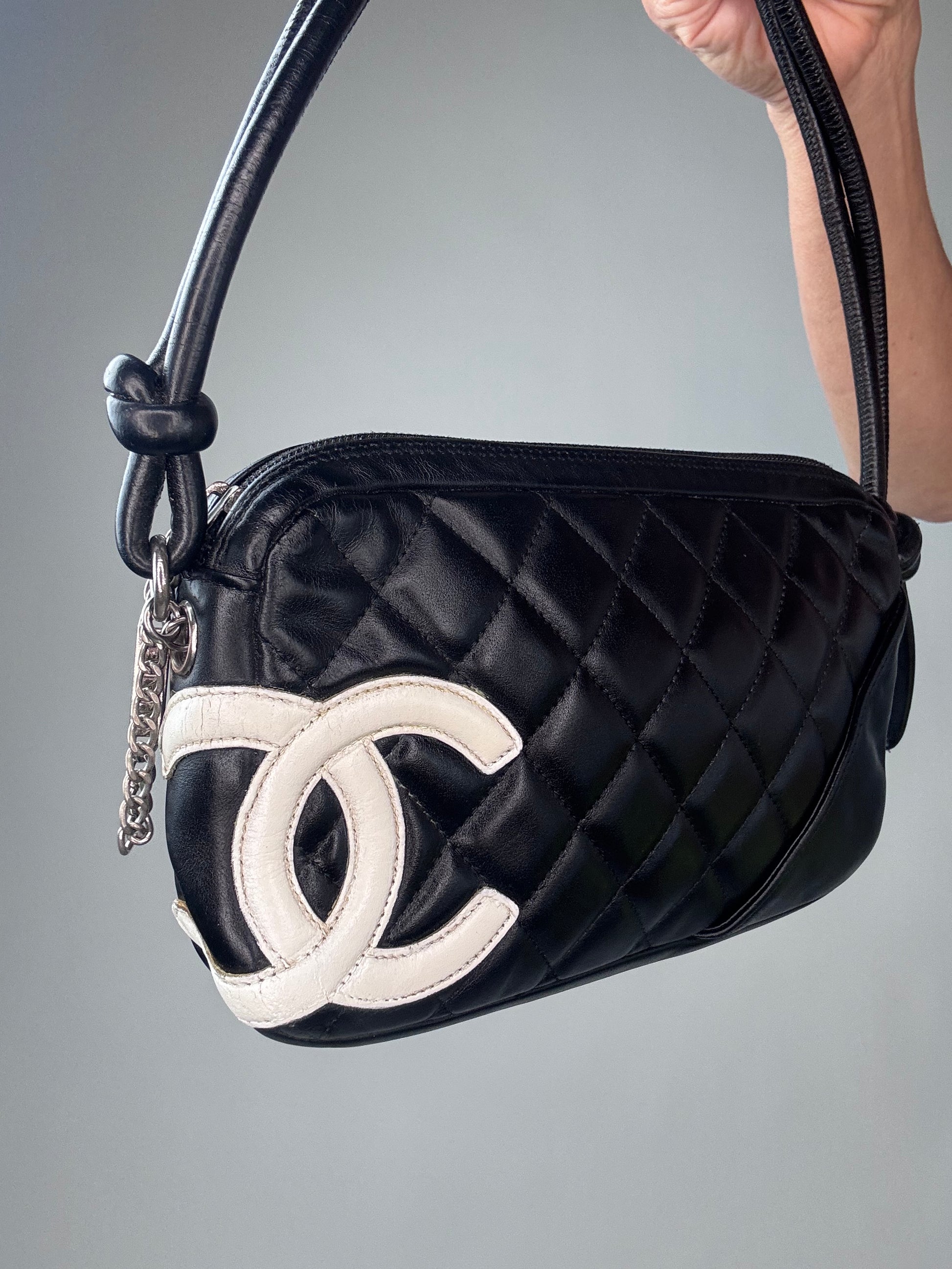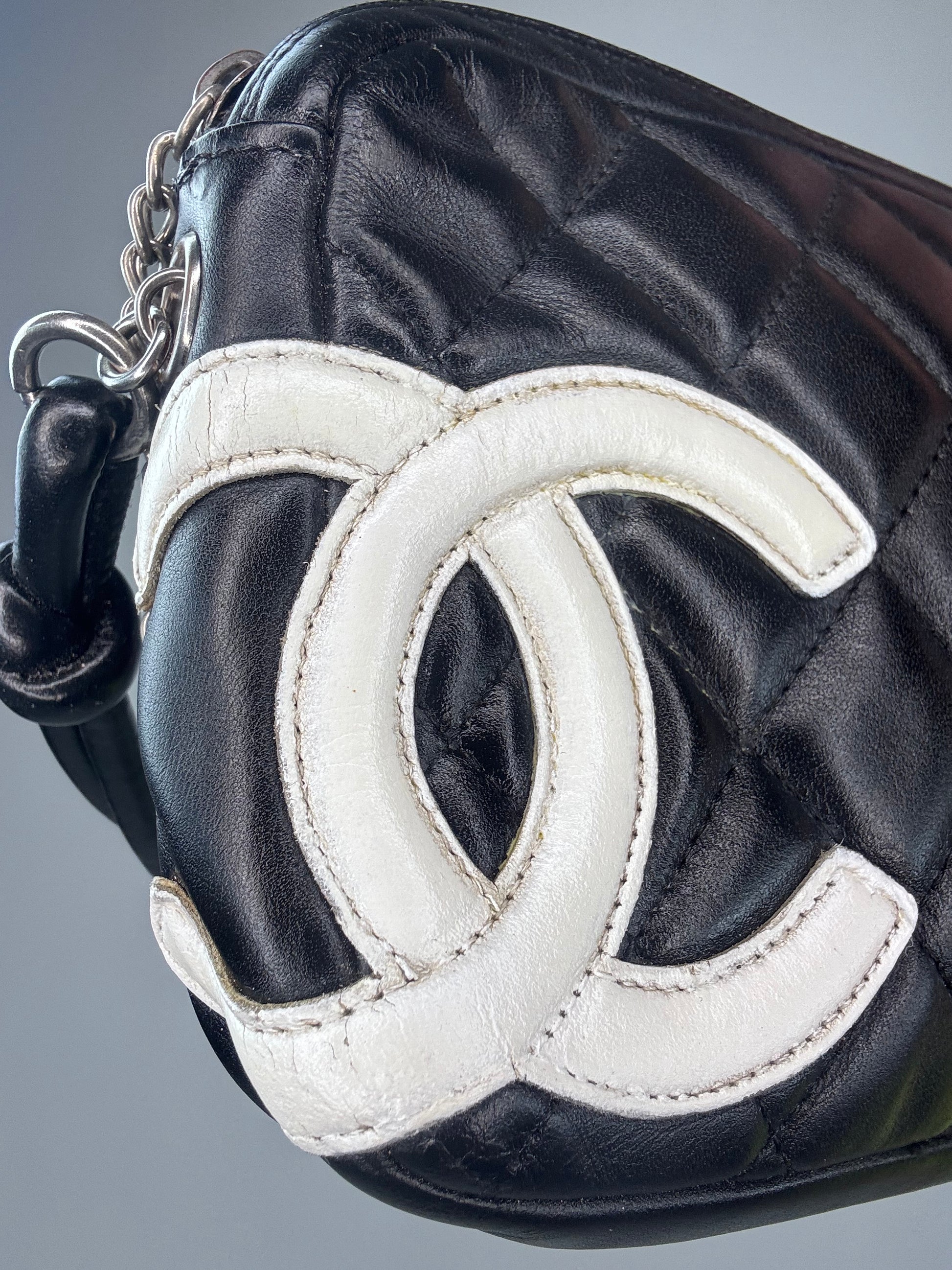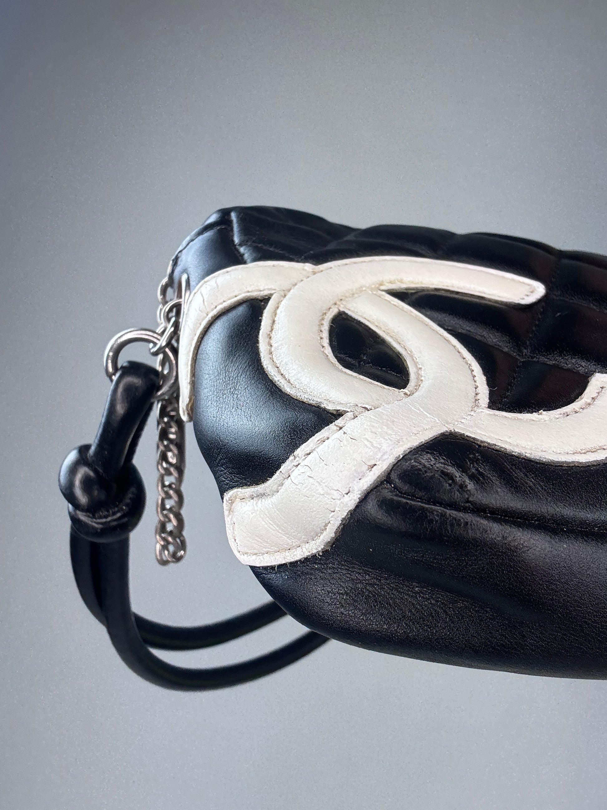Chanel Calfskin Quilted Cambon Pochette - Black / White