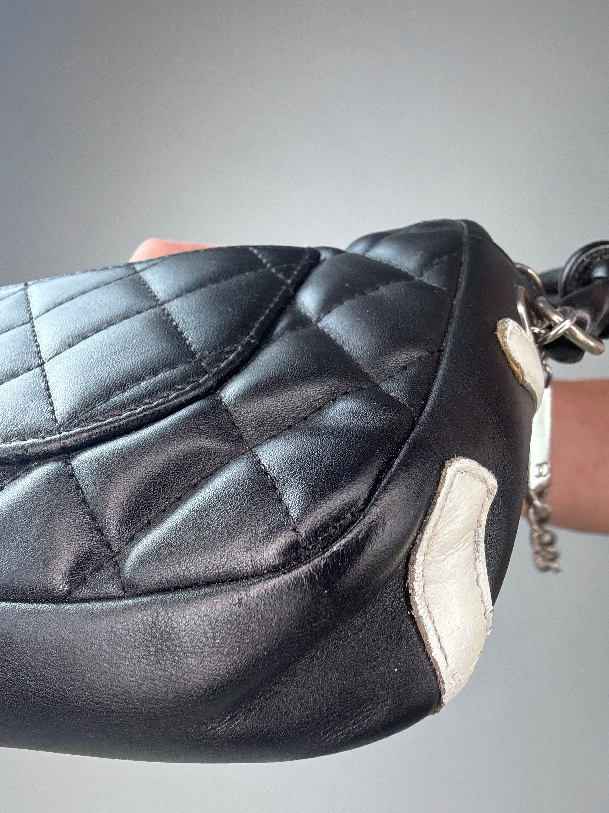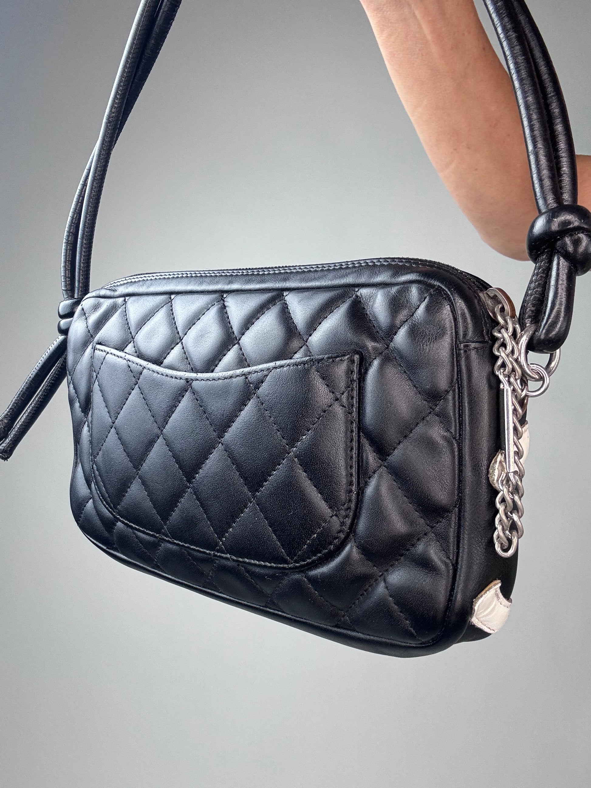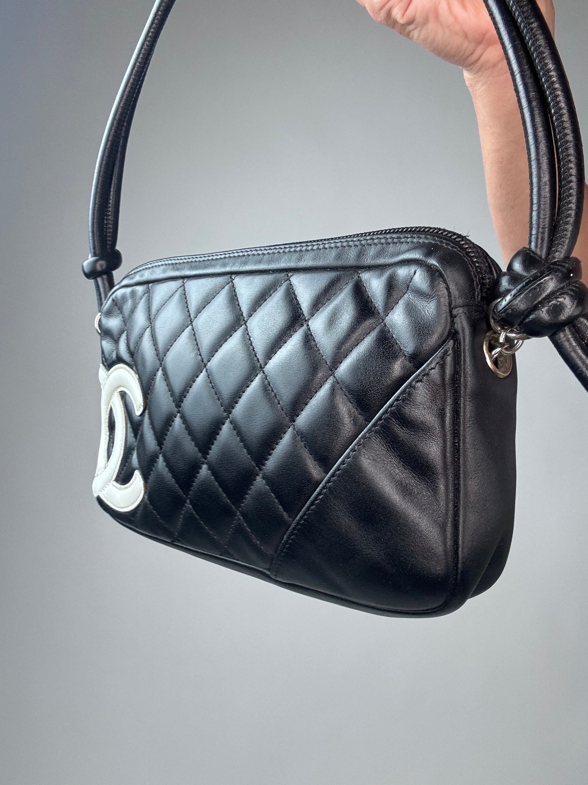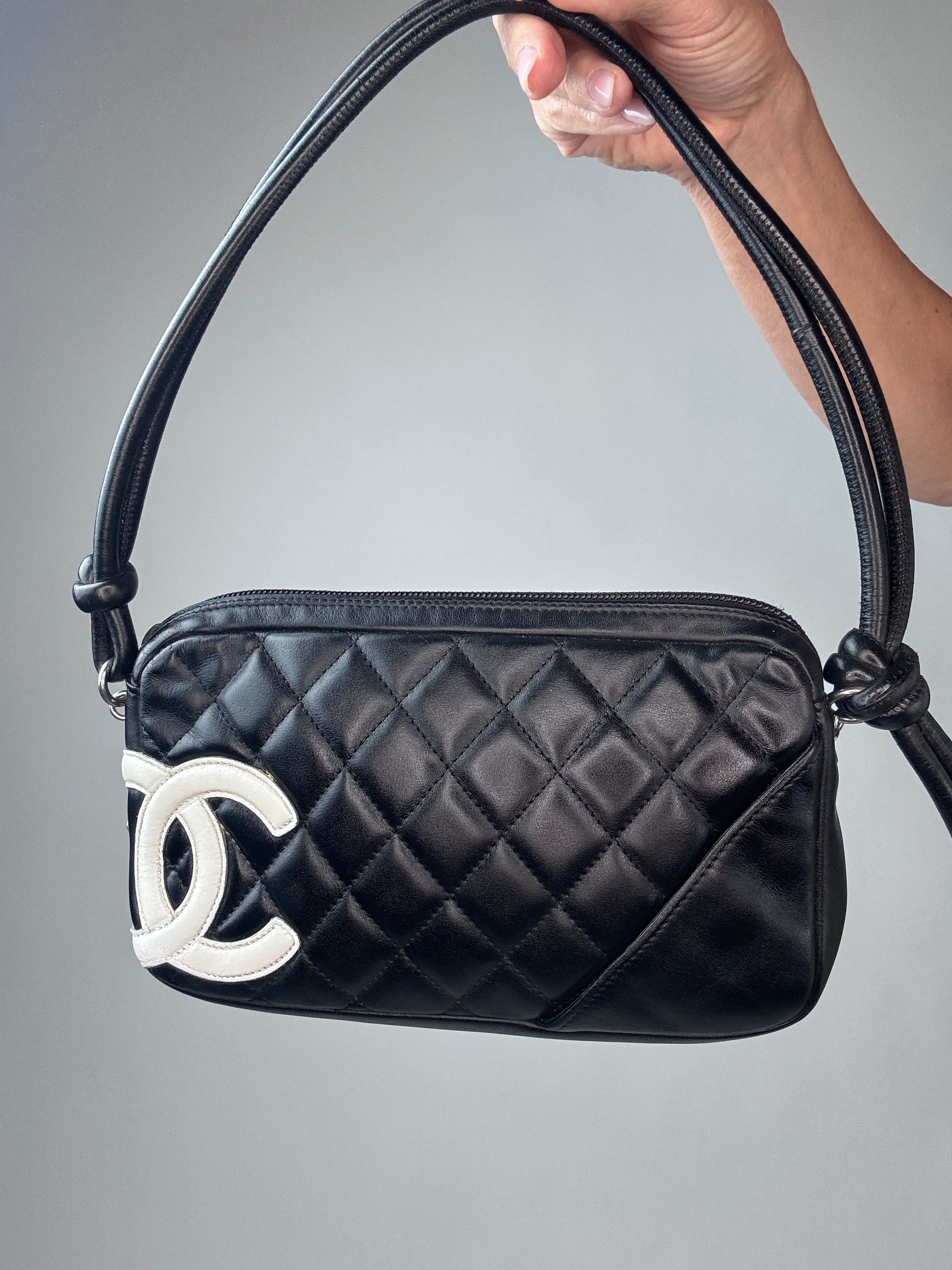 Chanel Calfskin Quilted Cambon Pochette - Black / White
