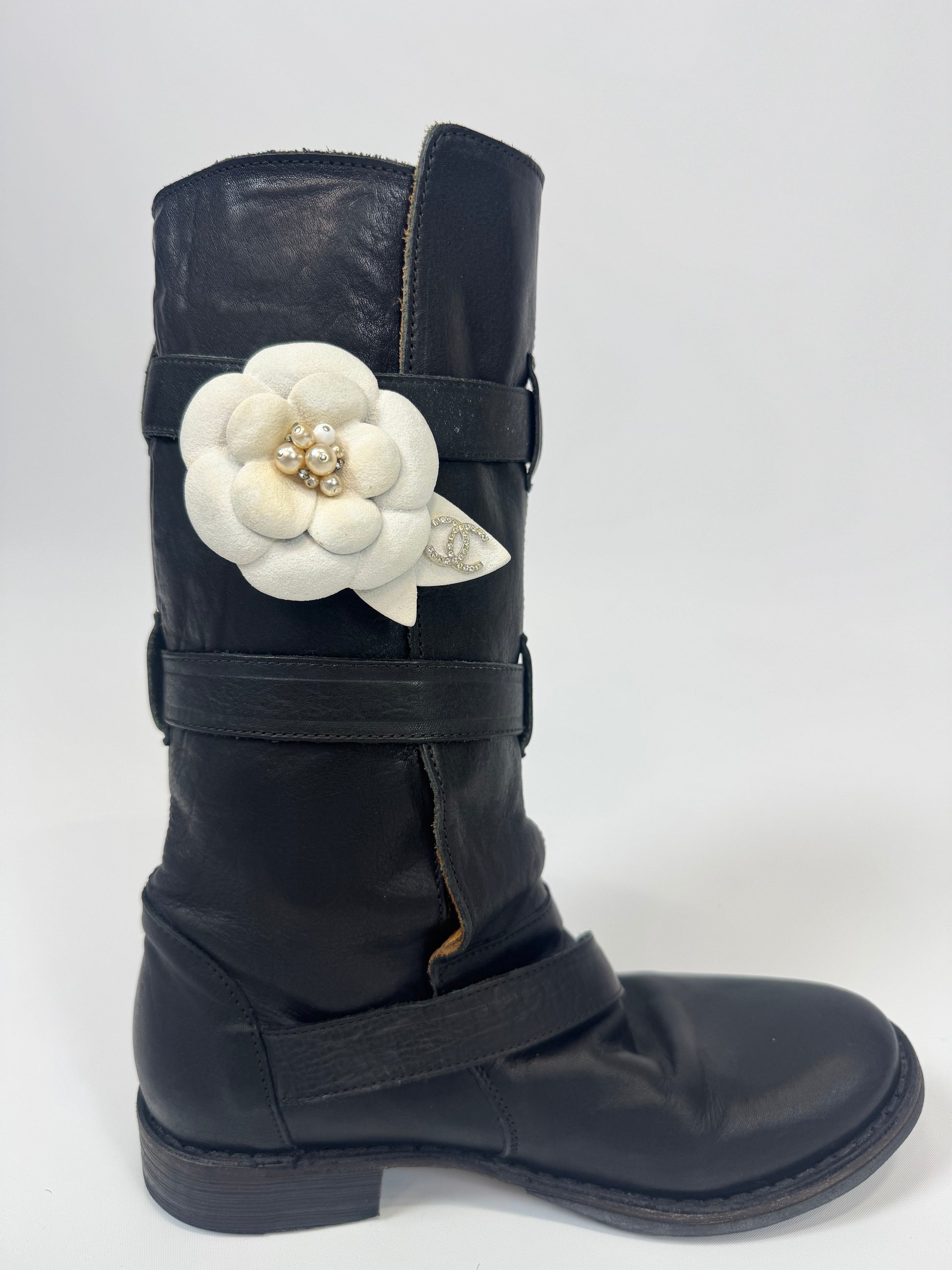 So much more than a brooch! Wear on your hand bag, boots , hats, belts and more ! gey creative with this rare vintage Camellia Chanel brooch!