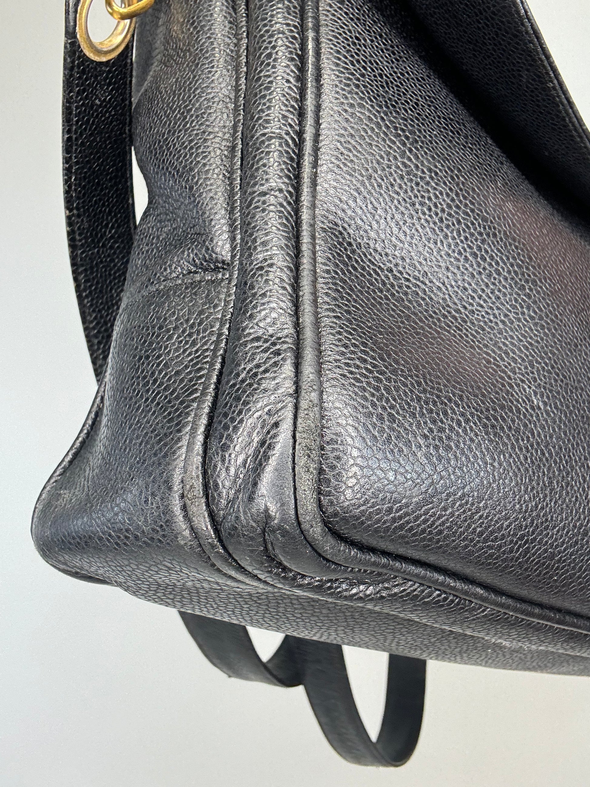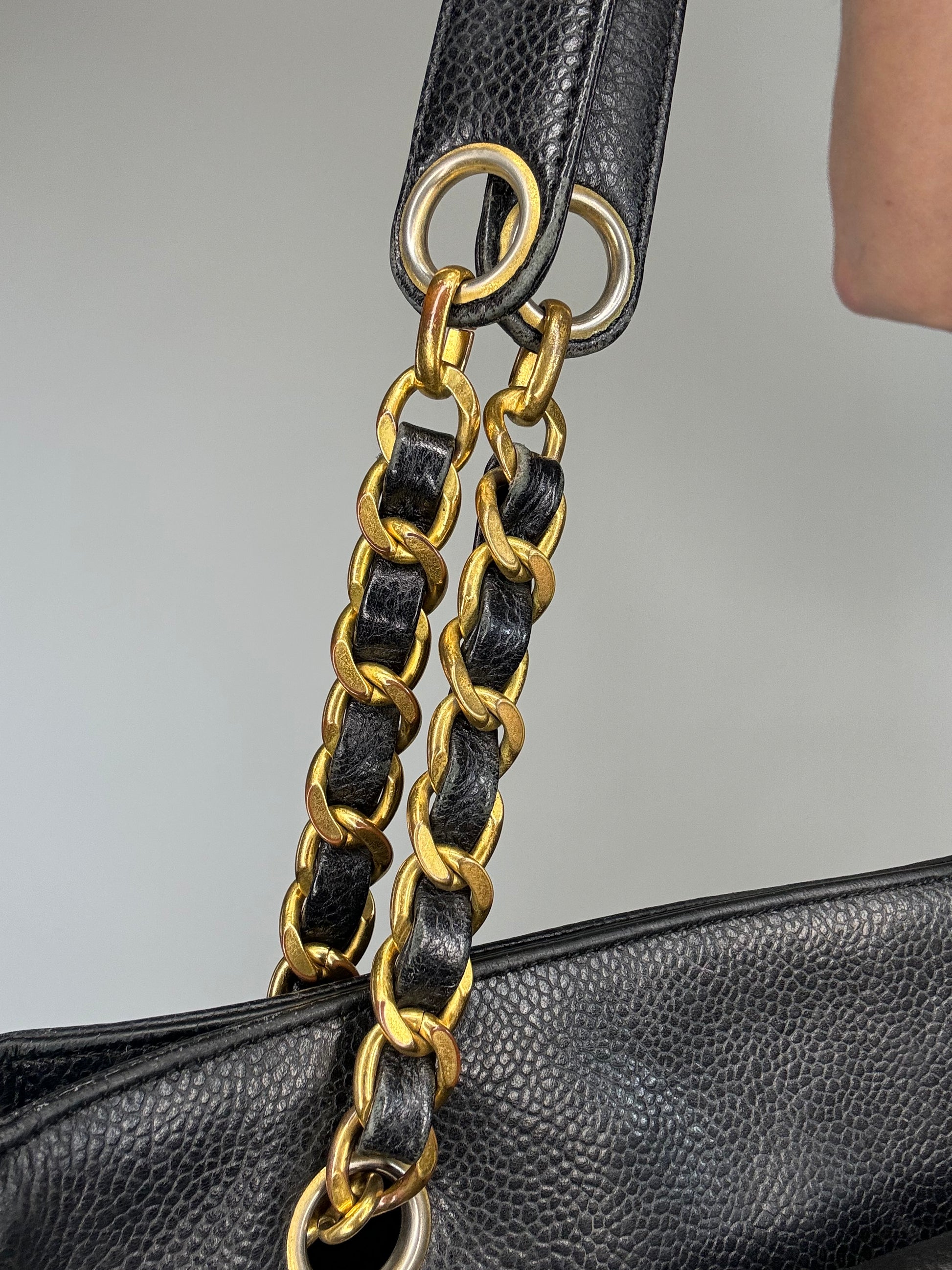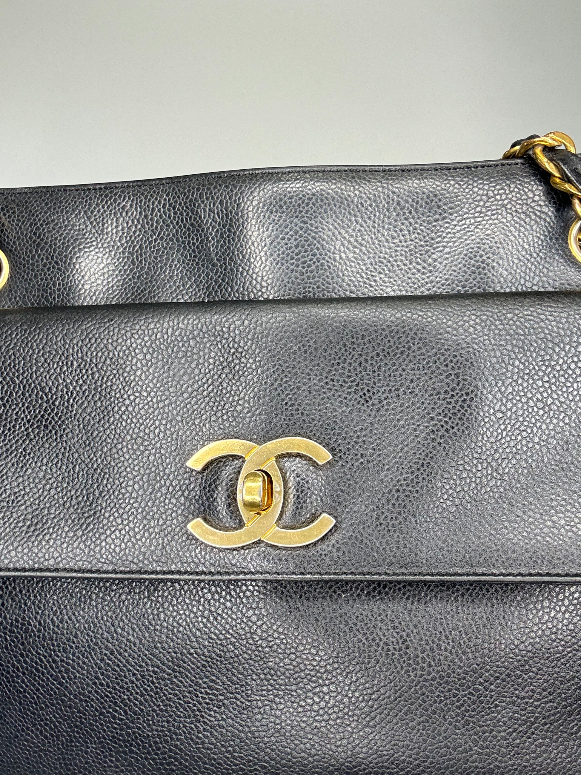 Two In looks caviar skin Chanel tote, Classic style with 24k gold plated hardware CC turn lock on one side! CC stitching on the other side. Highly sought after Chanel bag. Can be be worn as a crossbody for a more Casual look.