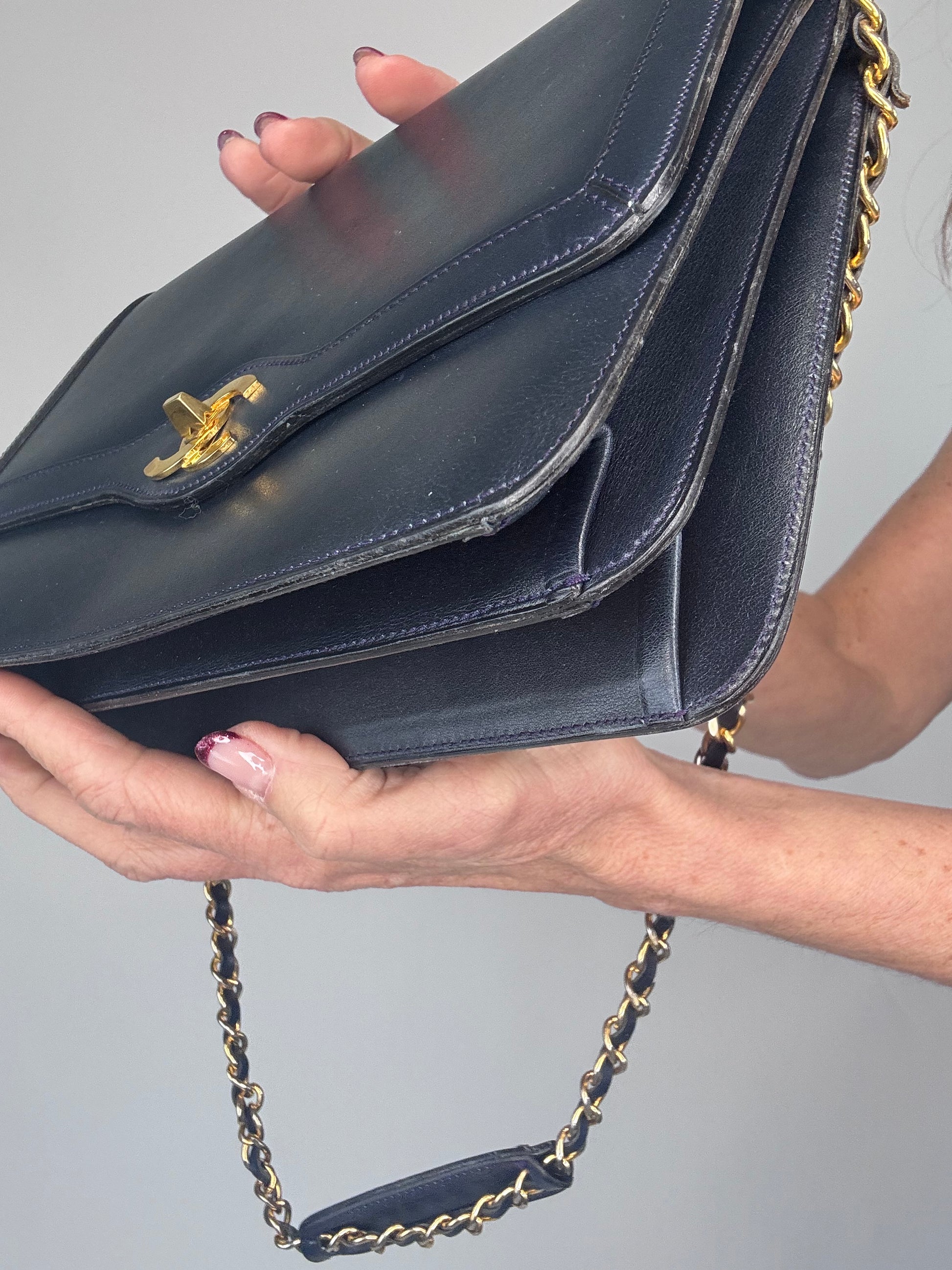 Chanel Vintage Single Flap Paris Limited Edition Navy Blue