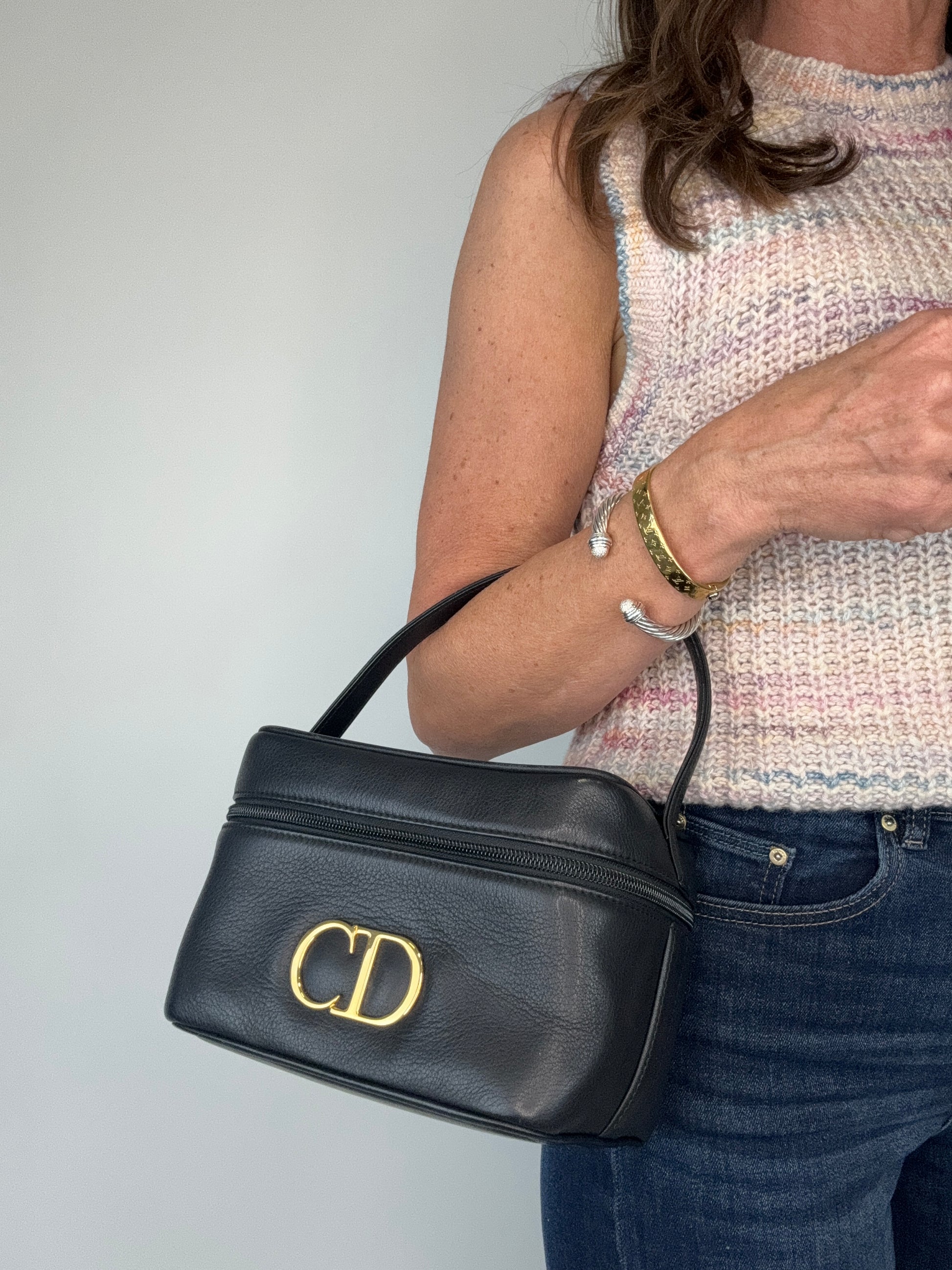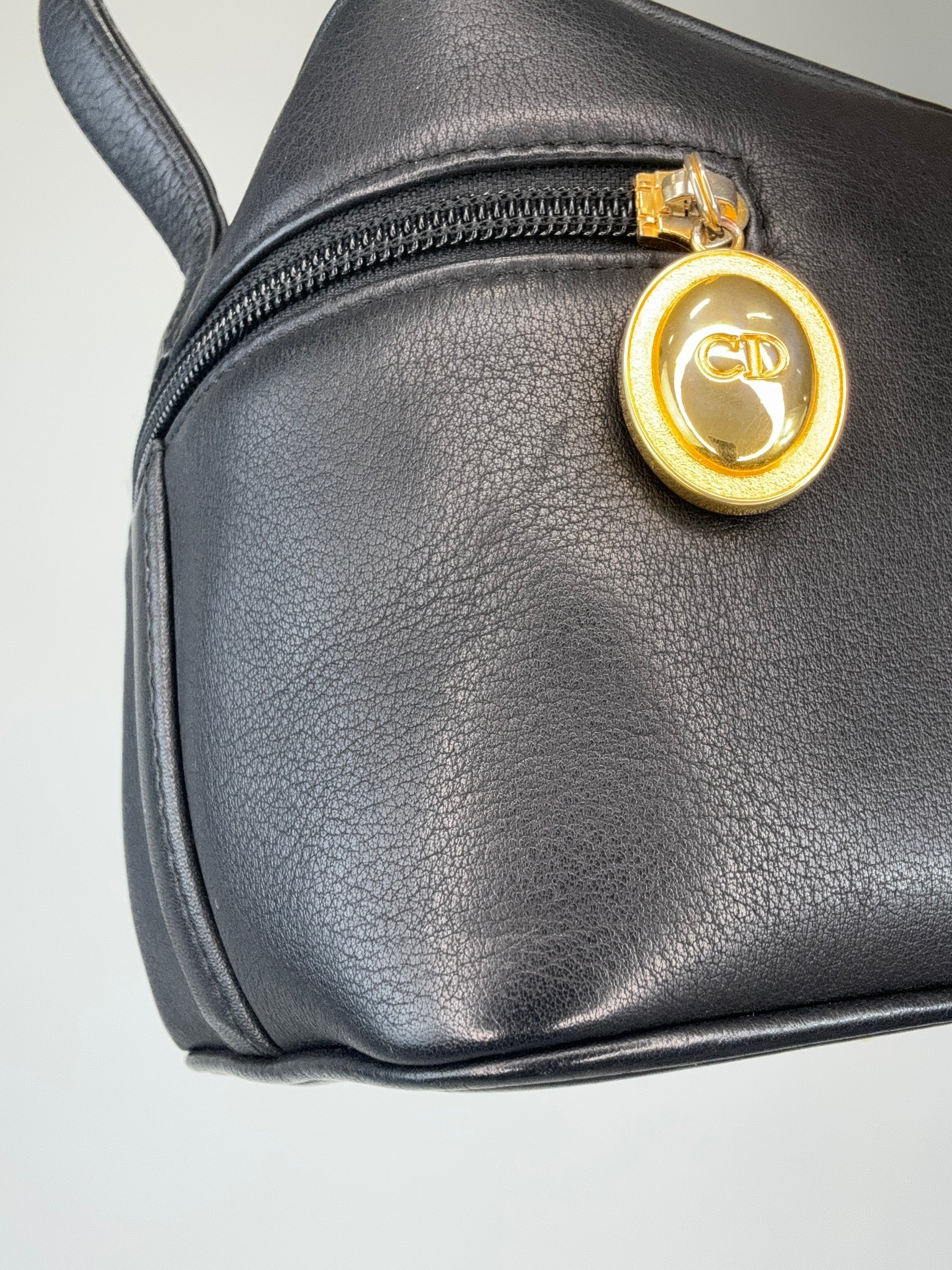 Gorgeous CD Vanity bag , features all leather, gold CD logo zip ! classic vibes! Fits your phone and all everyday essentials !