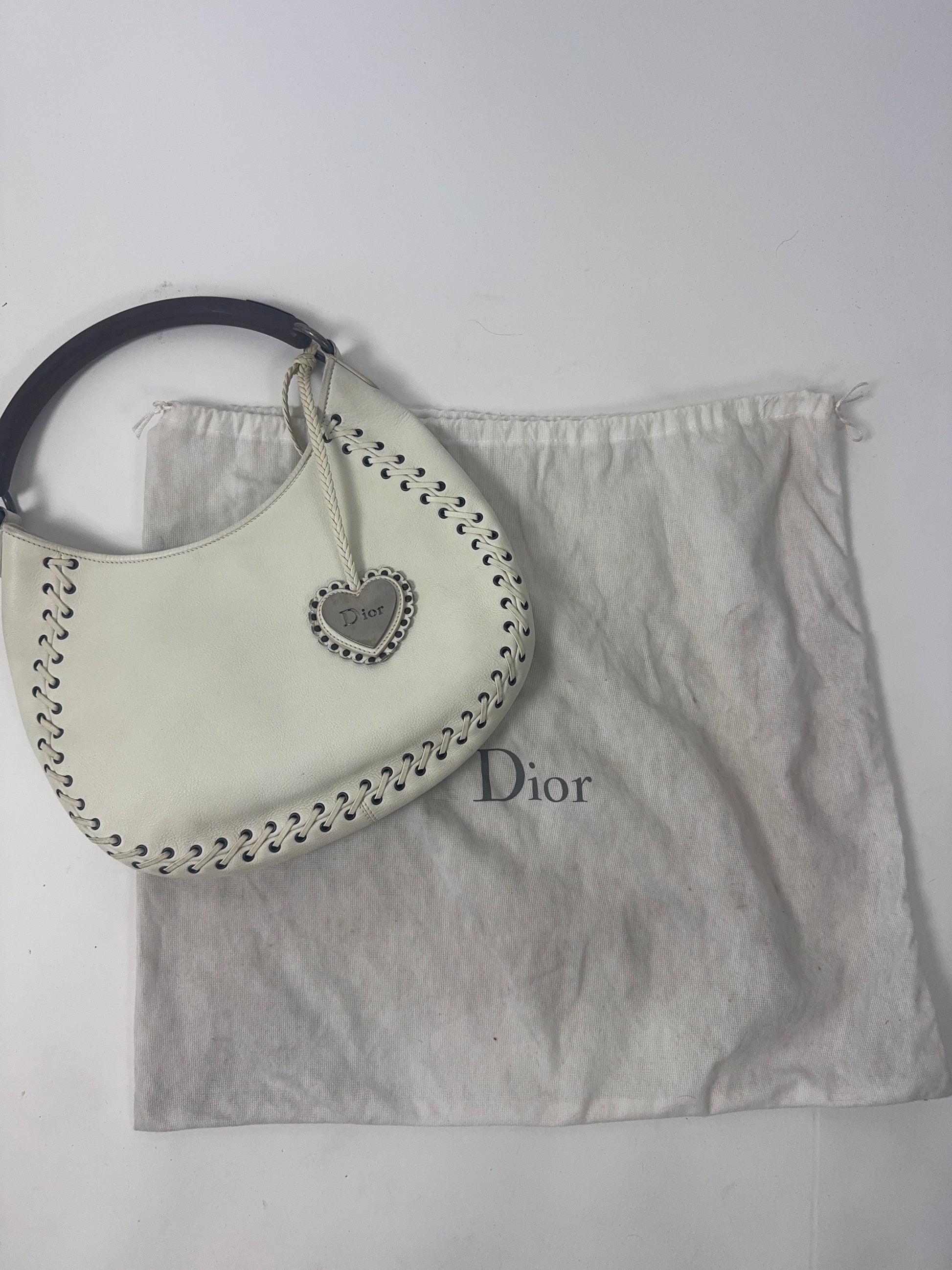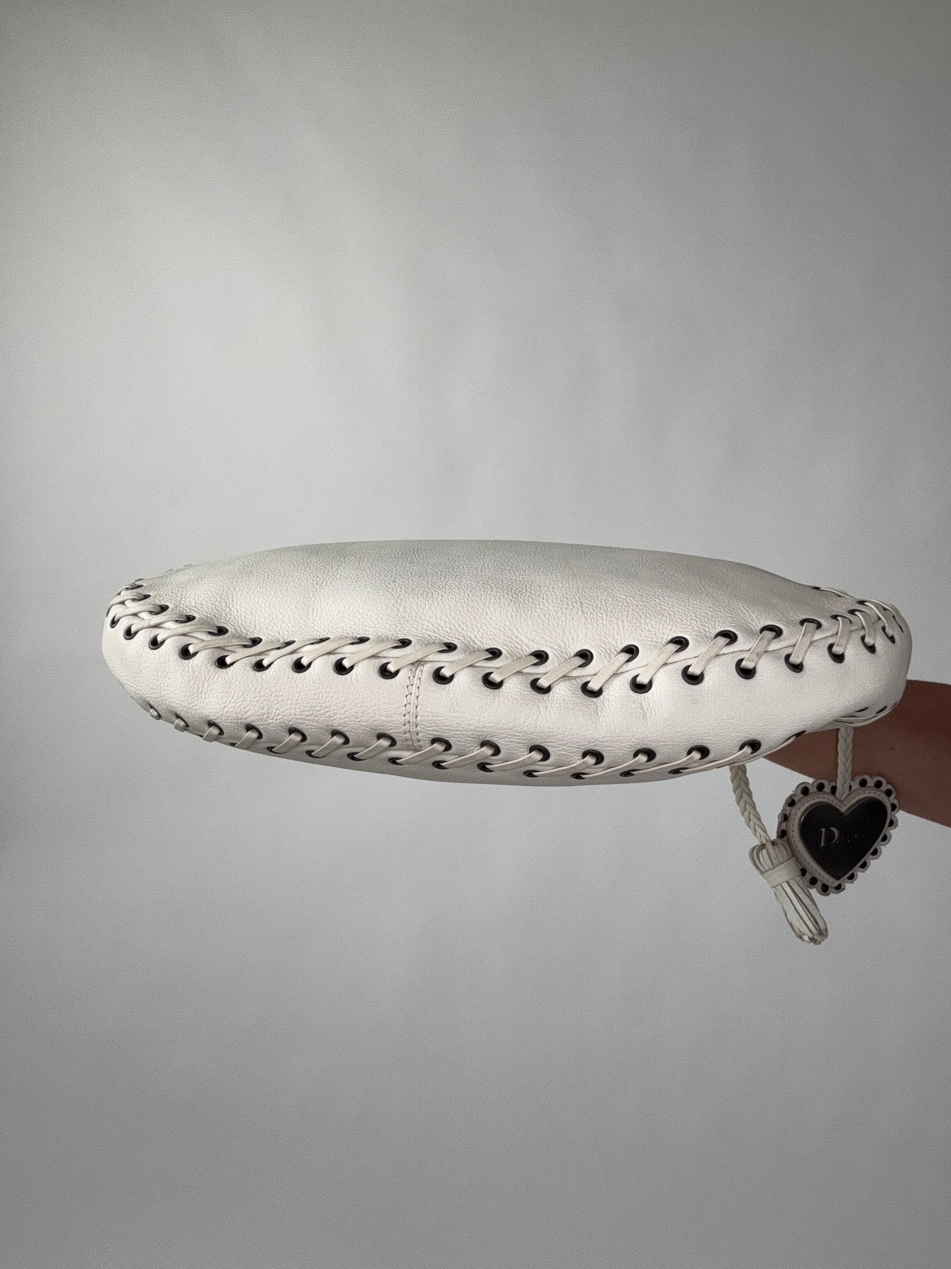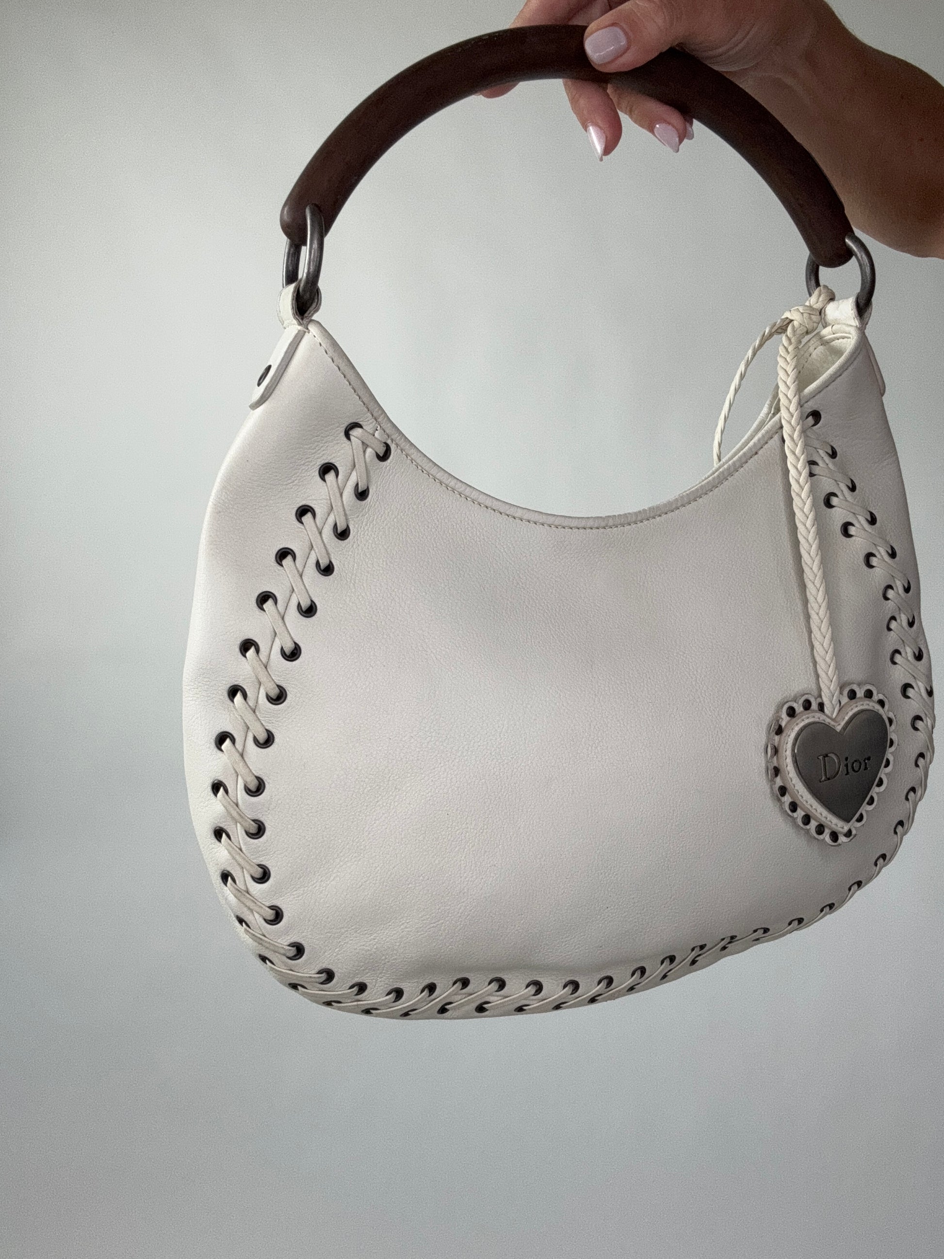 Christian Dior Wood Whip Stitch Hobo Bag - White