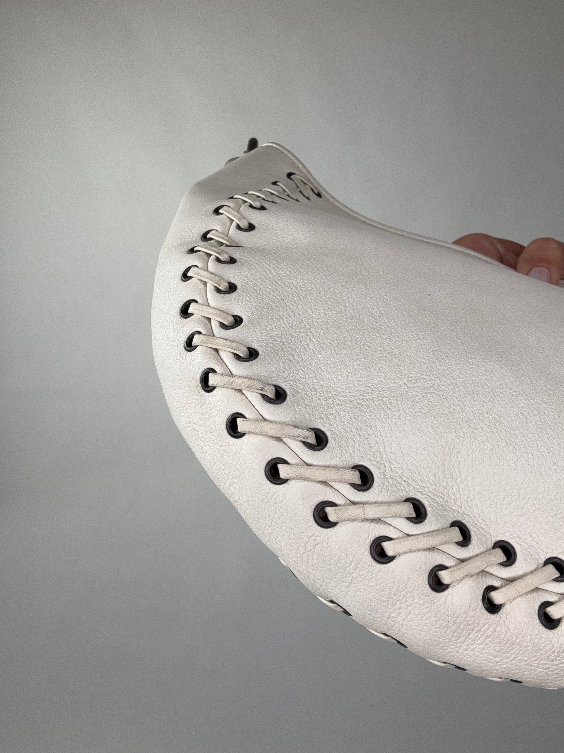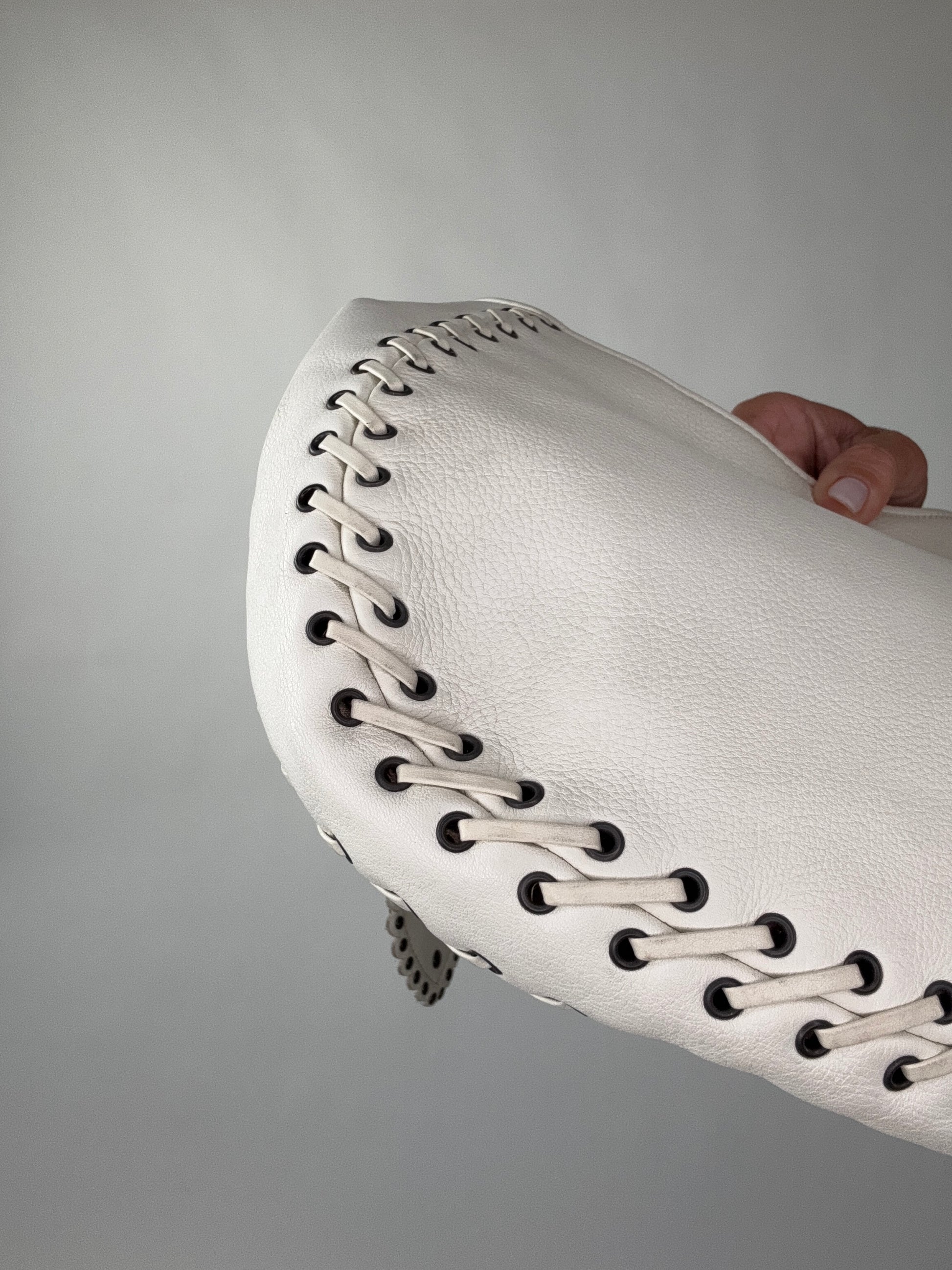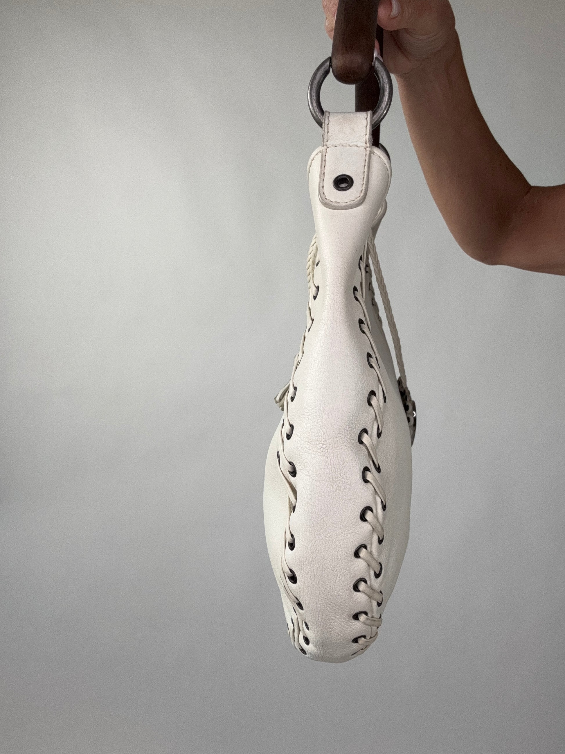 Christian Dior Wood Whip Stitch Hobo Bag - White