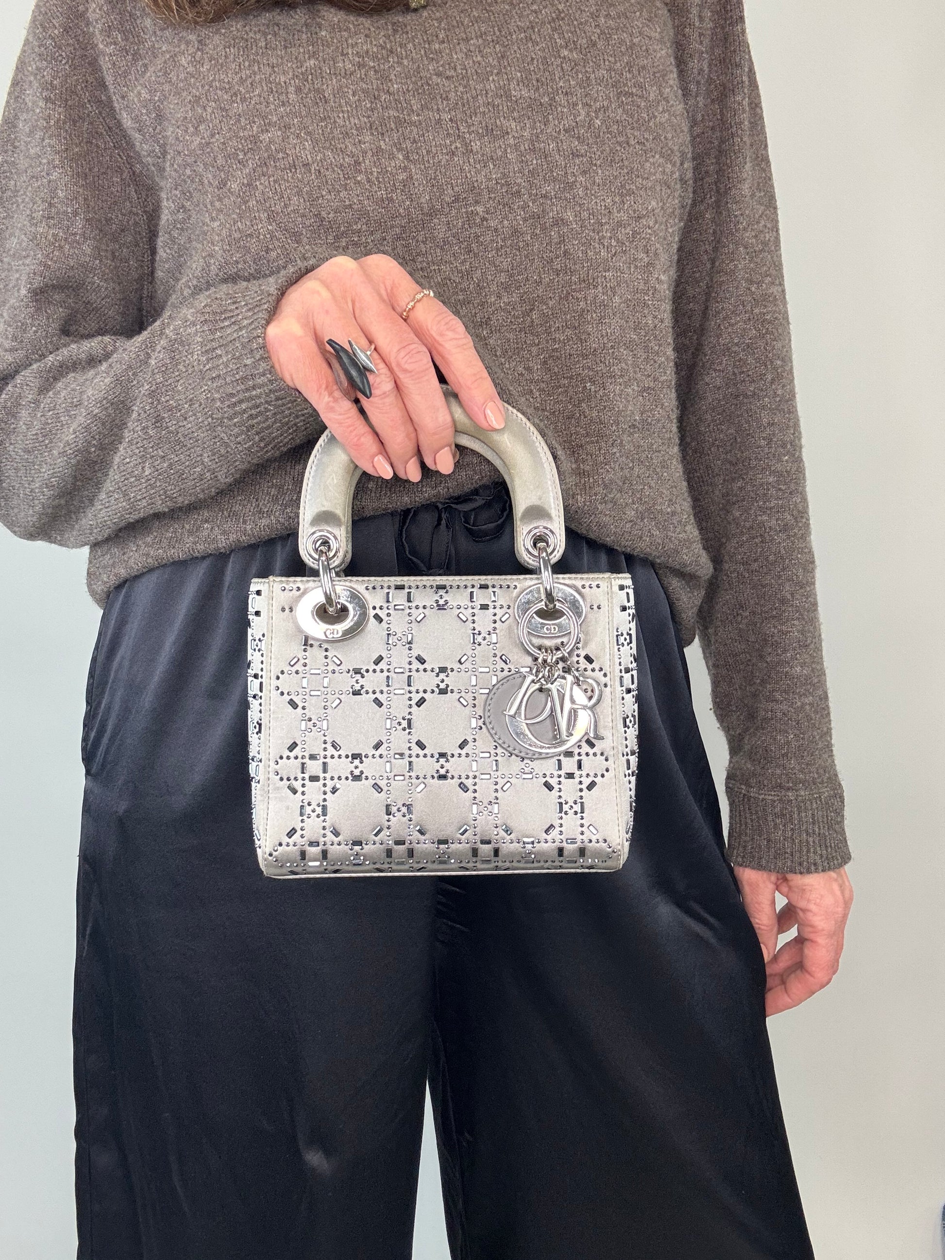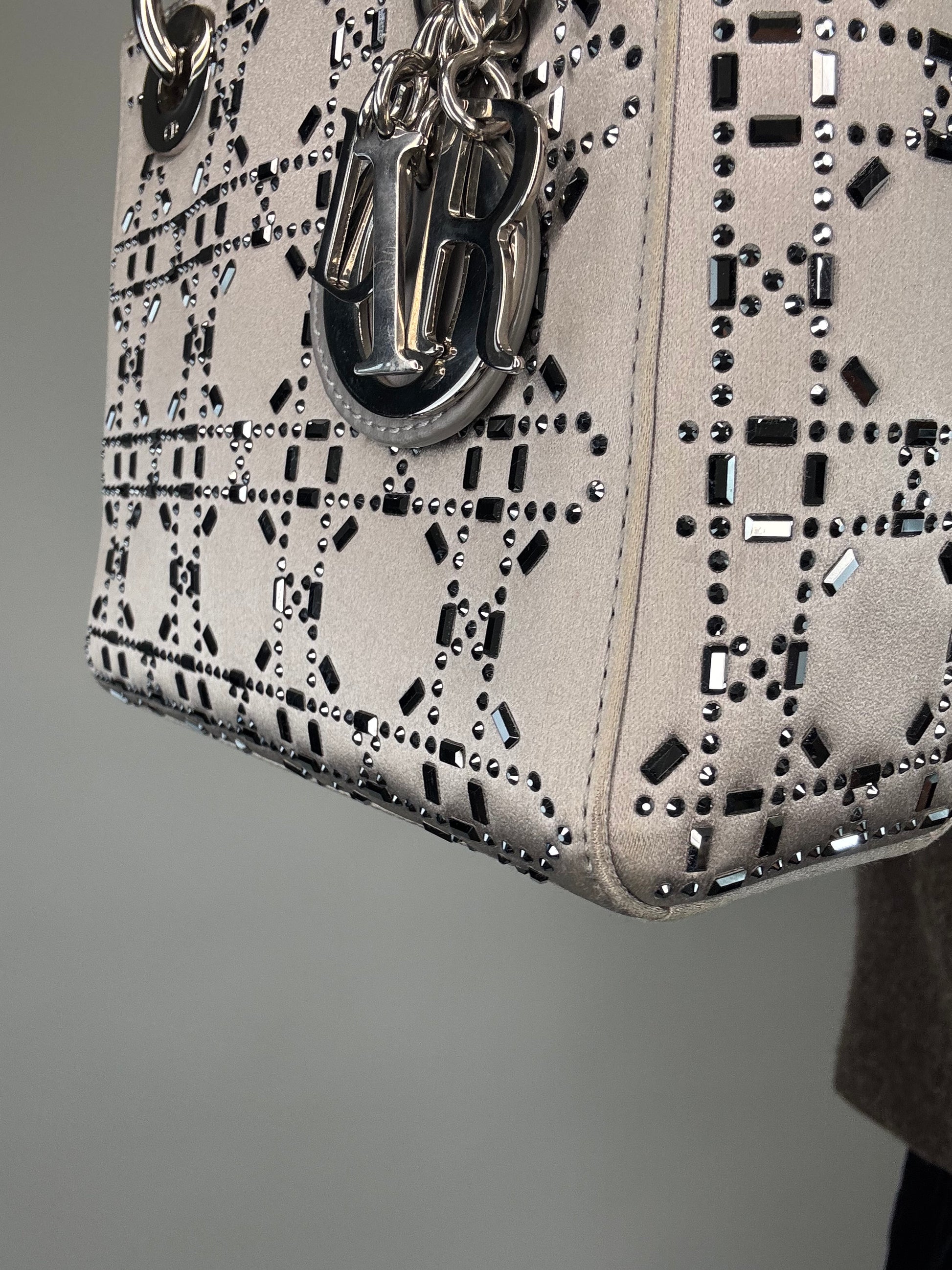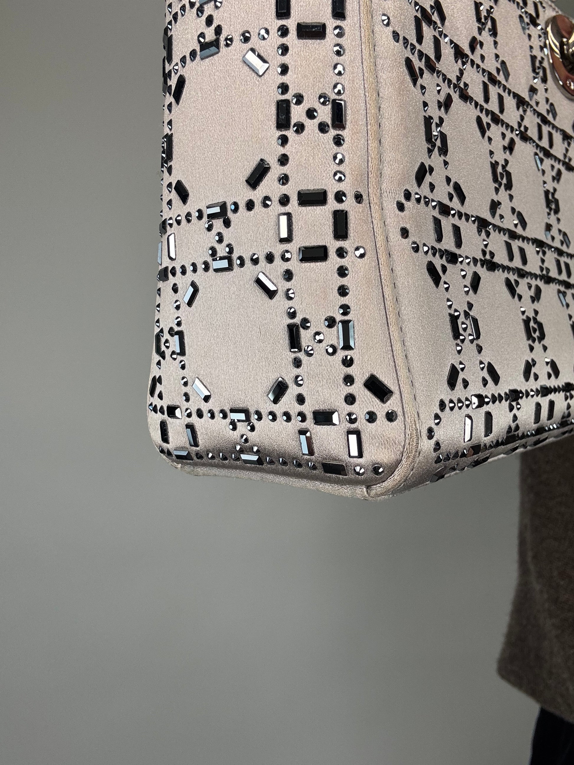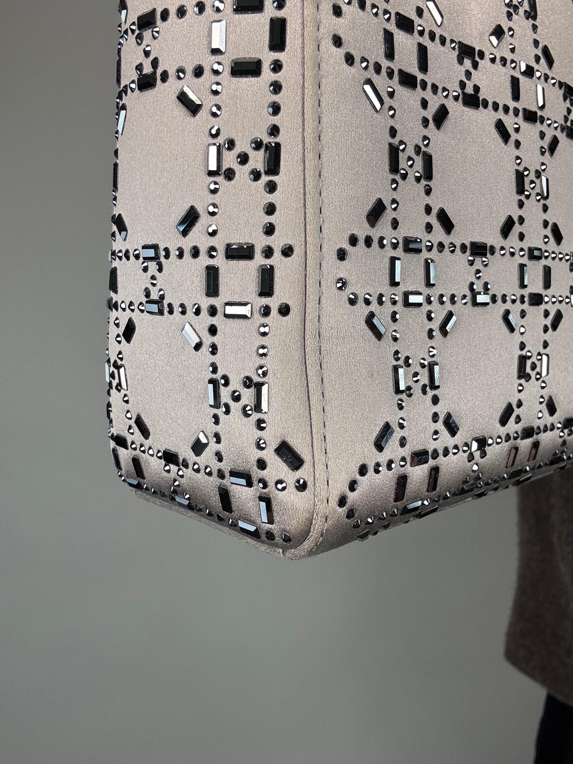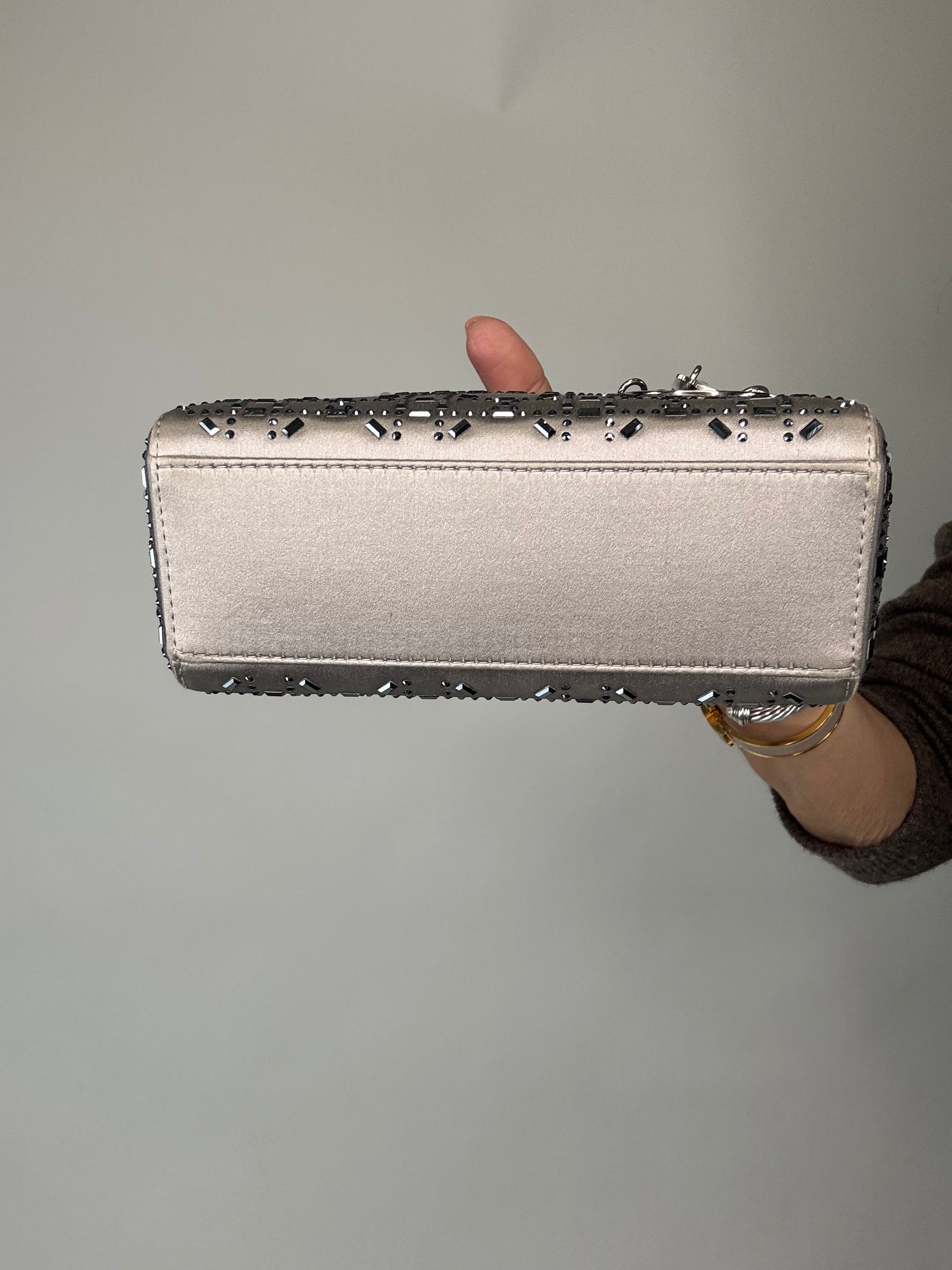 Christian Dior Mini Satin Cannage Crystal Embellished Lady Dior - Silver