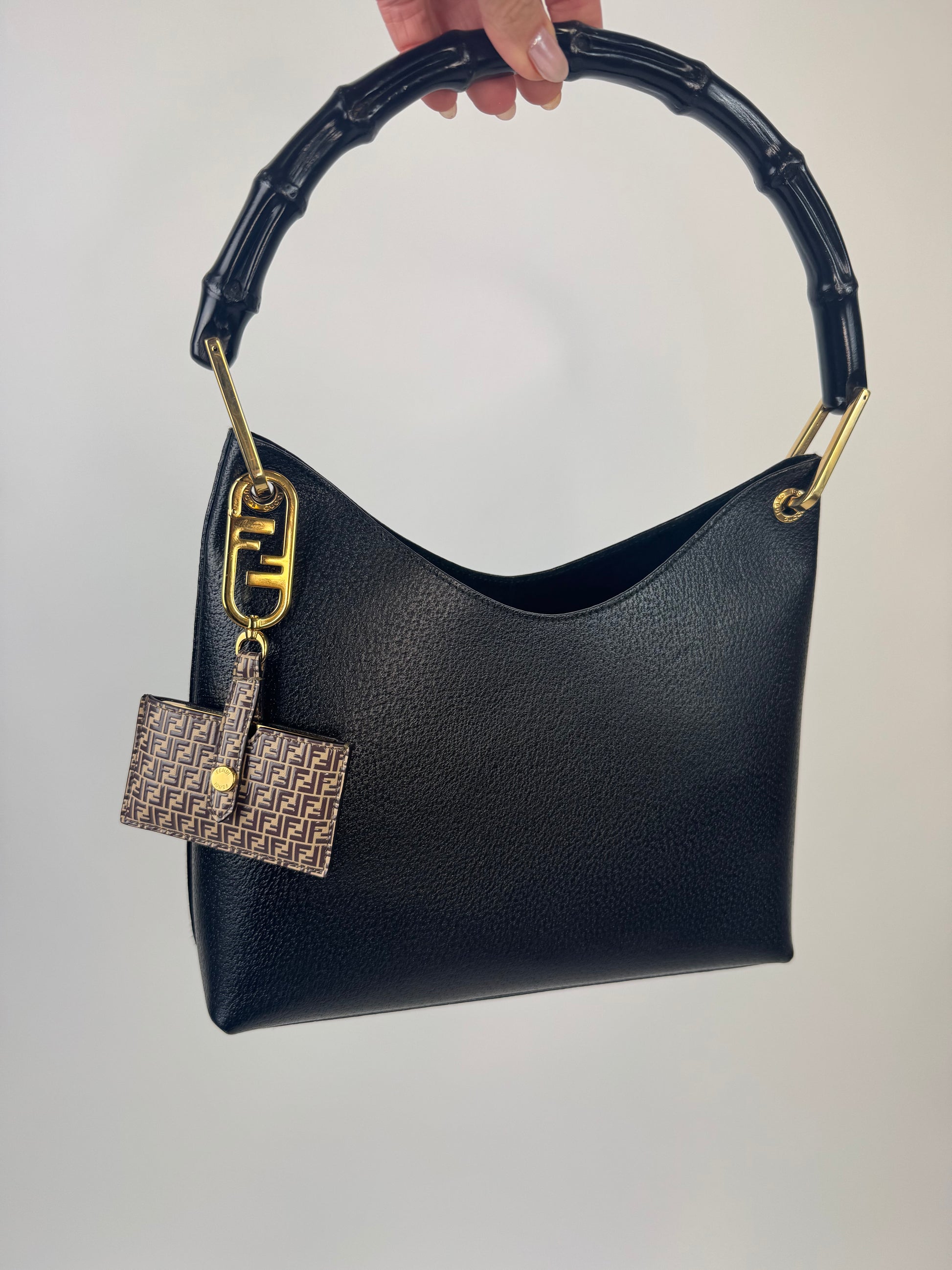 The smallest fendi bag! Wear as a ket chain, bag charm with an aborable compact mirror !! Dress up that bag with some jazz!
