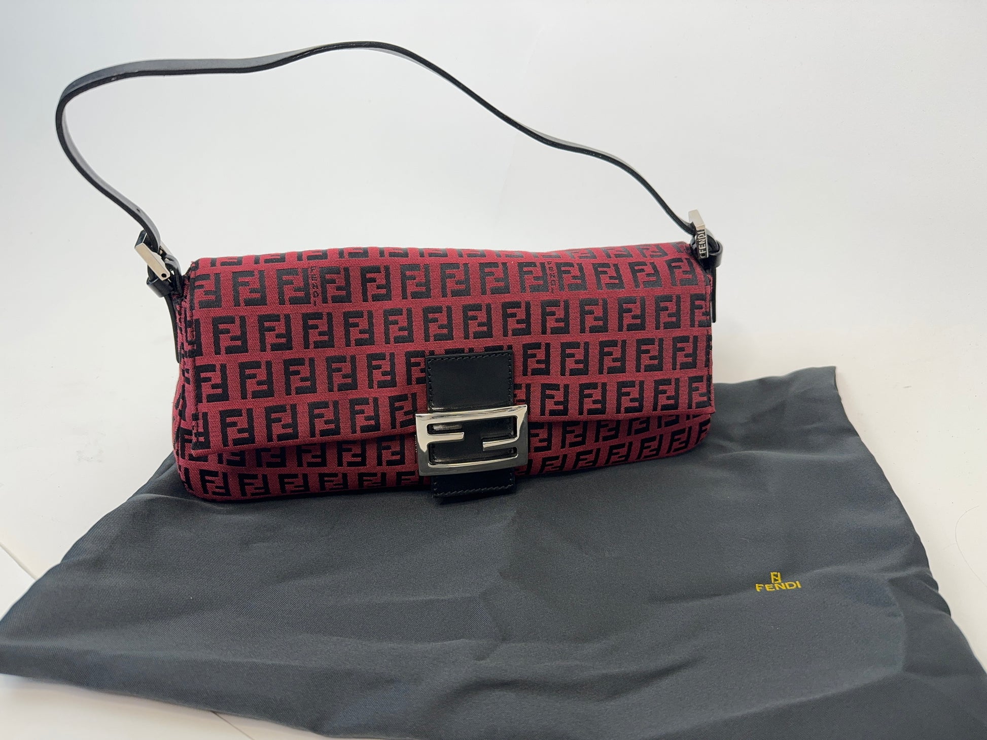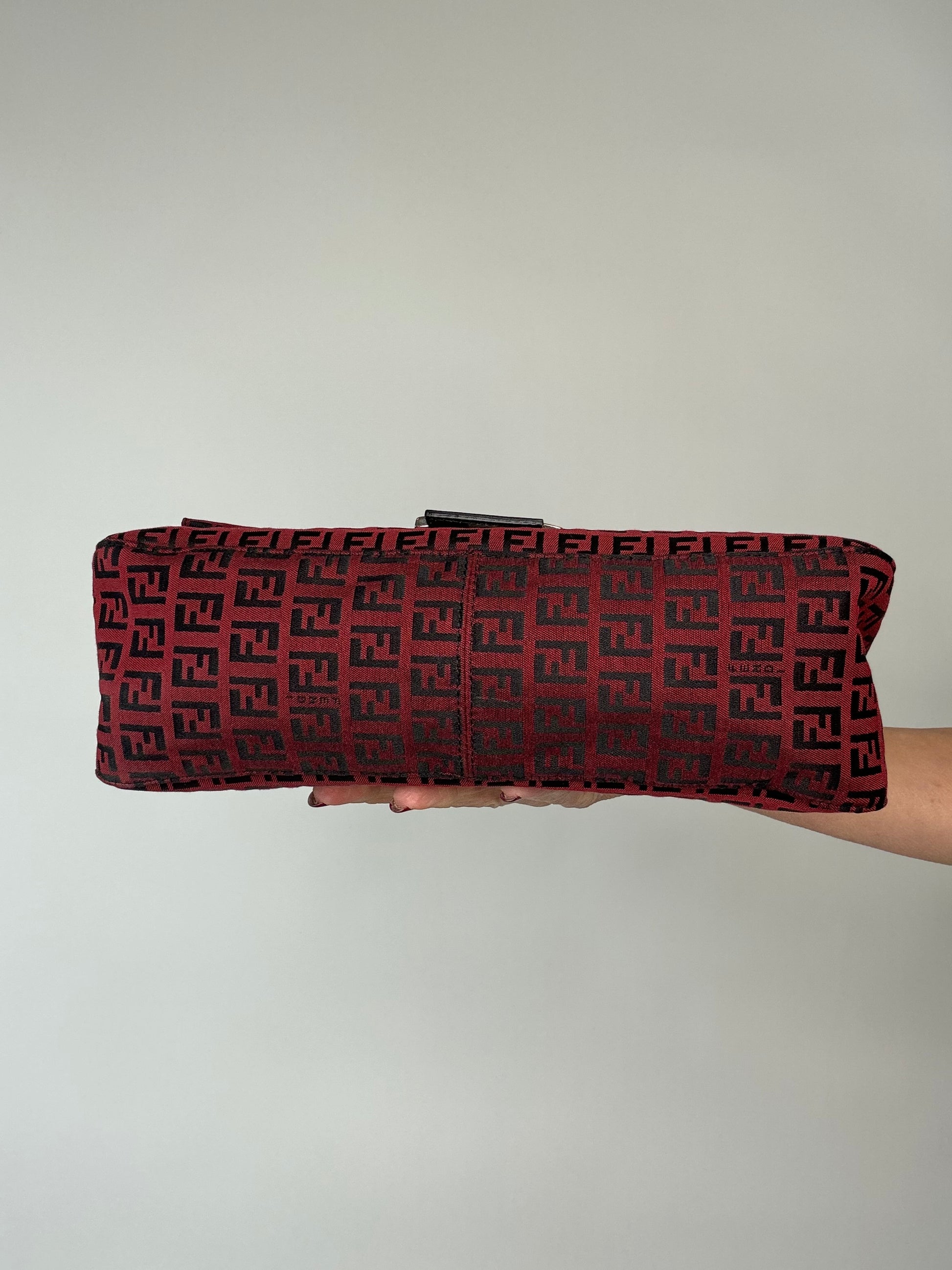 Beautiful burgundy red zucchino Fendi feature silver hardware, and adjustable leather strap! gorgerous classic Fendi! Fits your everyday essentials and more.