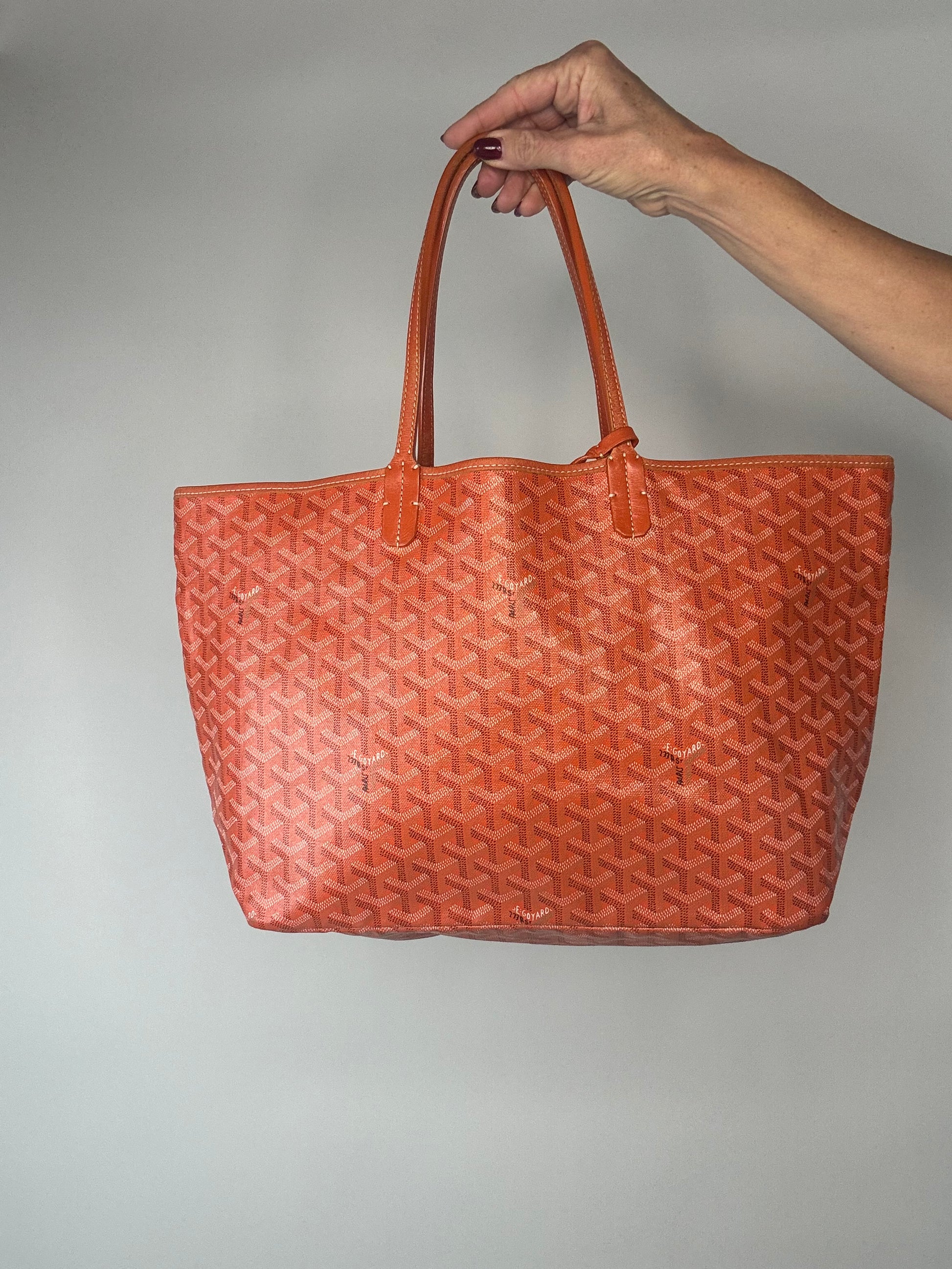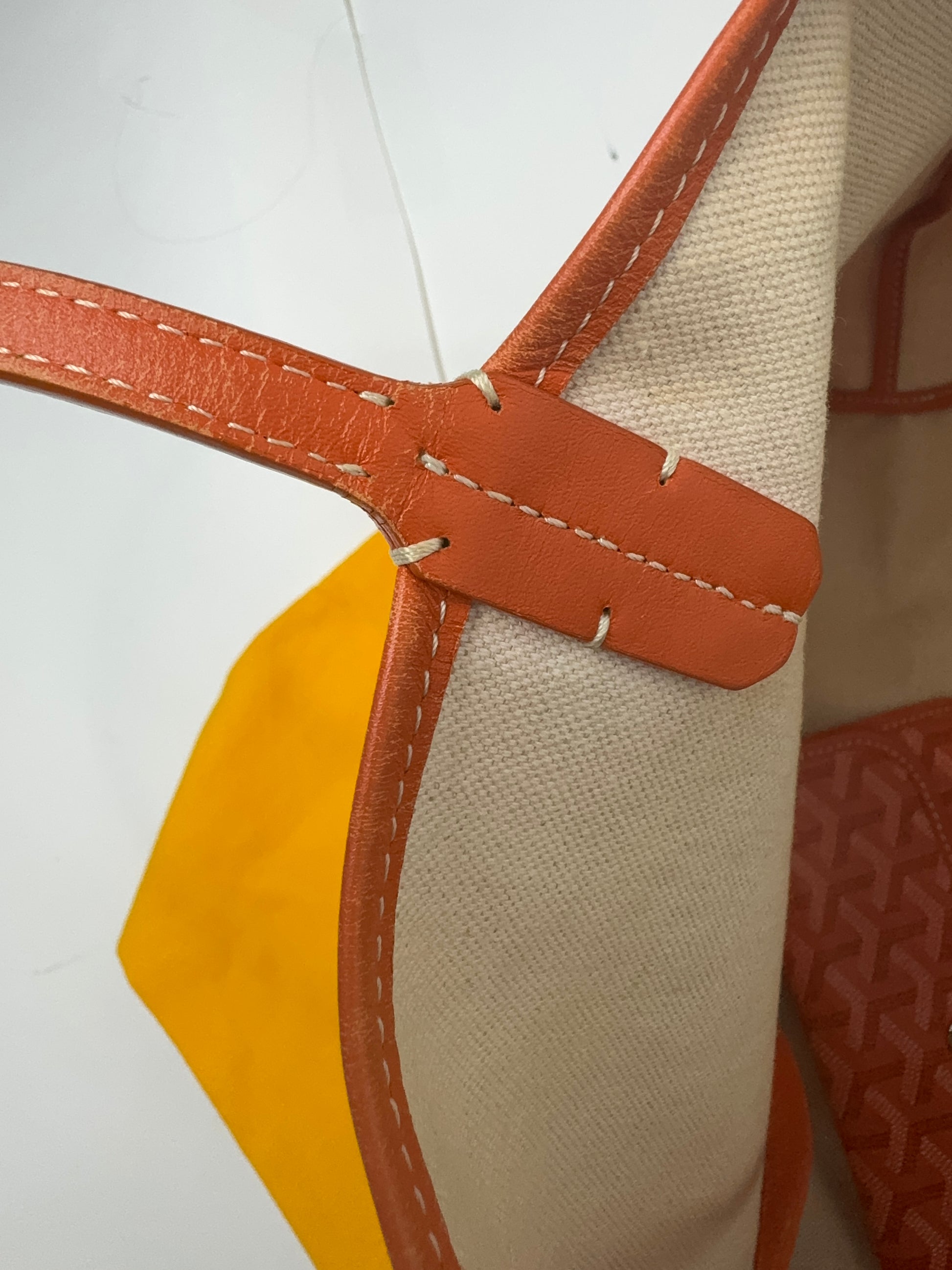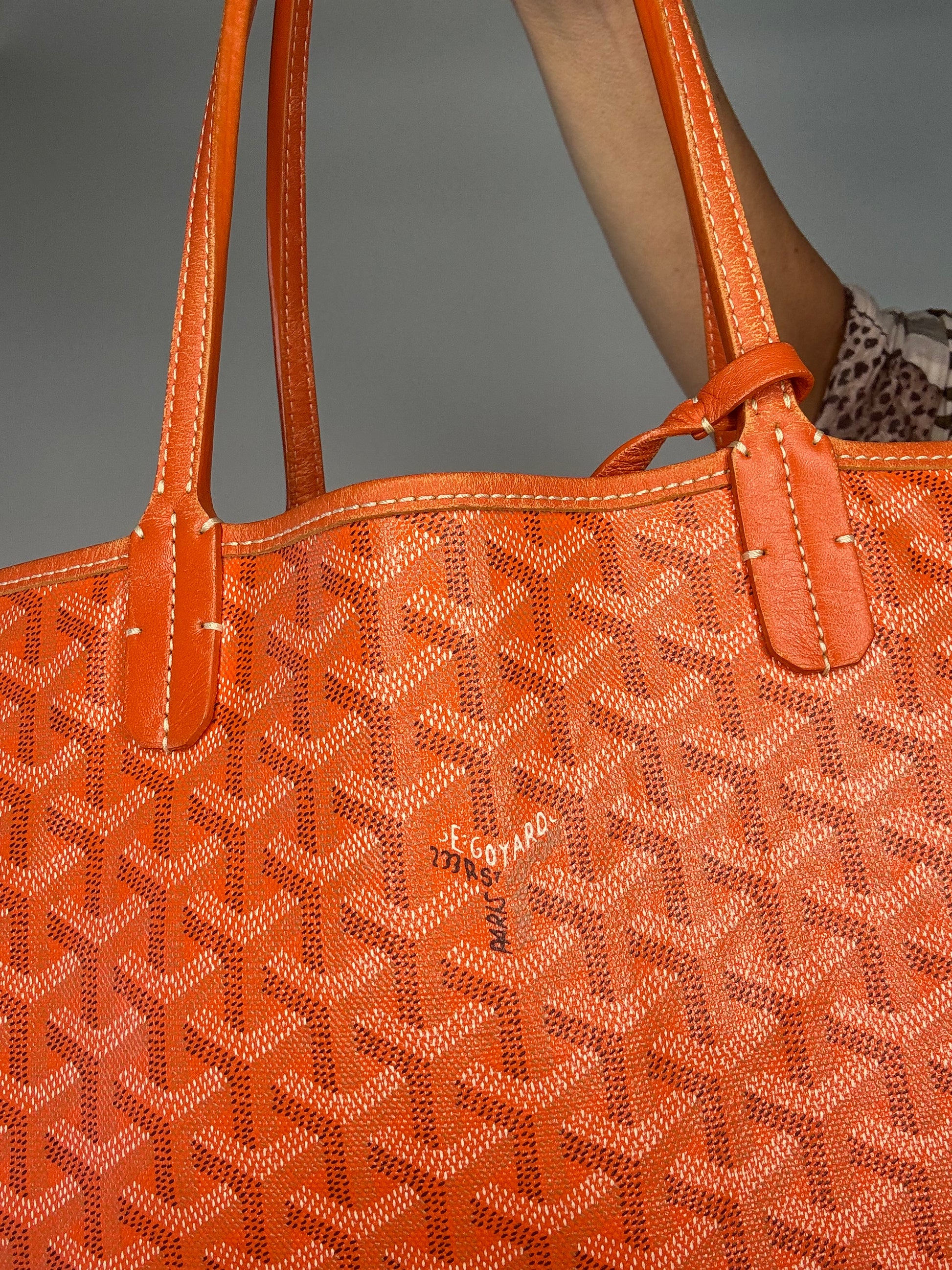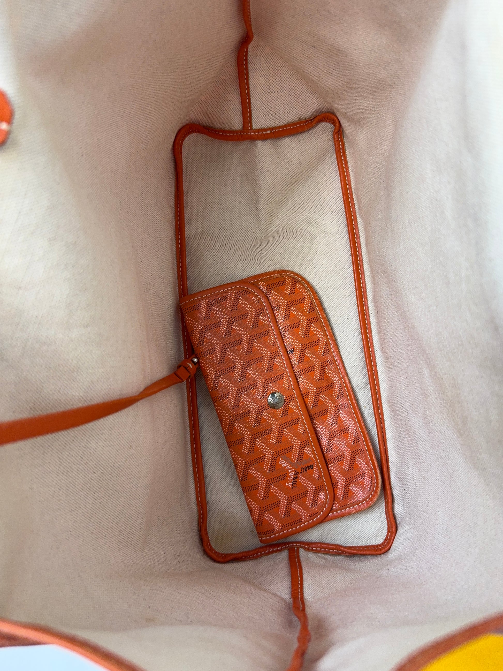 GOYARD Saint Louis PM Tote Bag Orange White Black Coated Canvas Leather