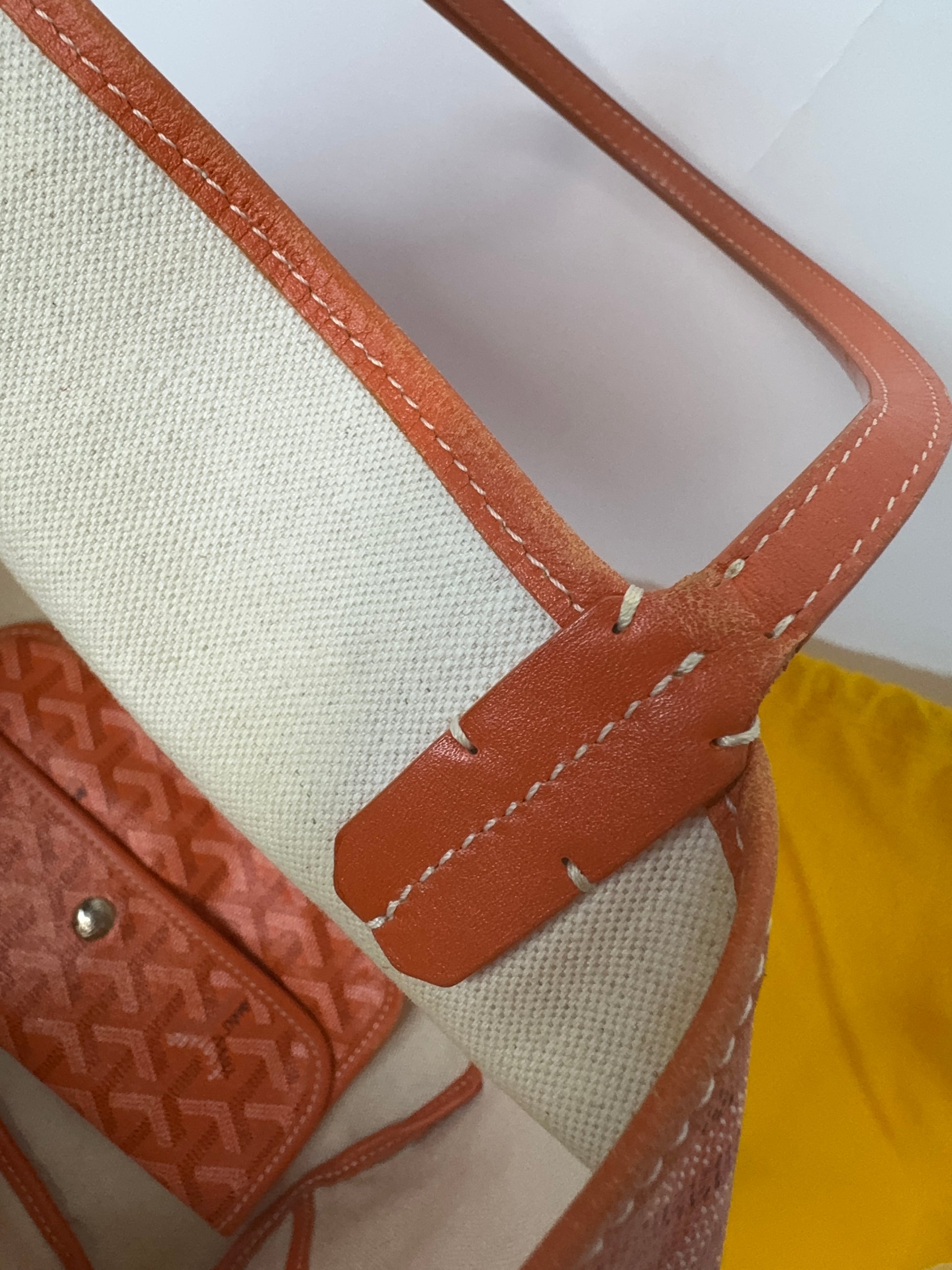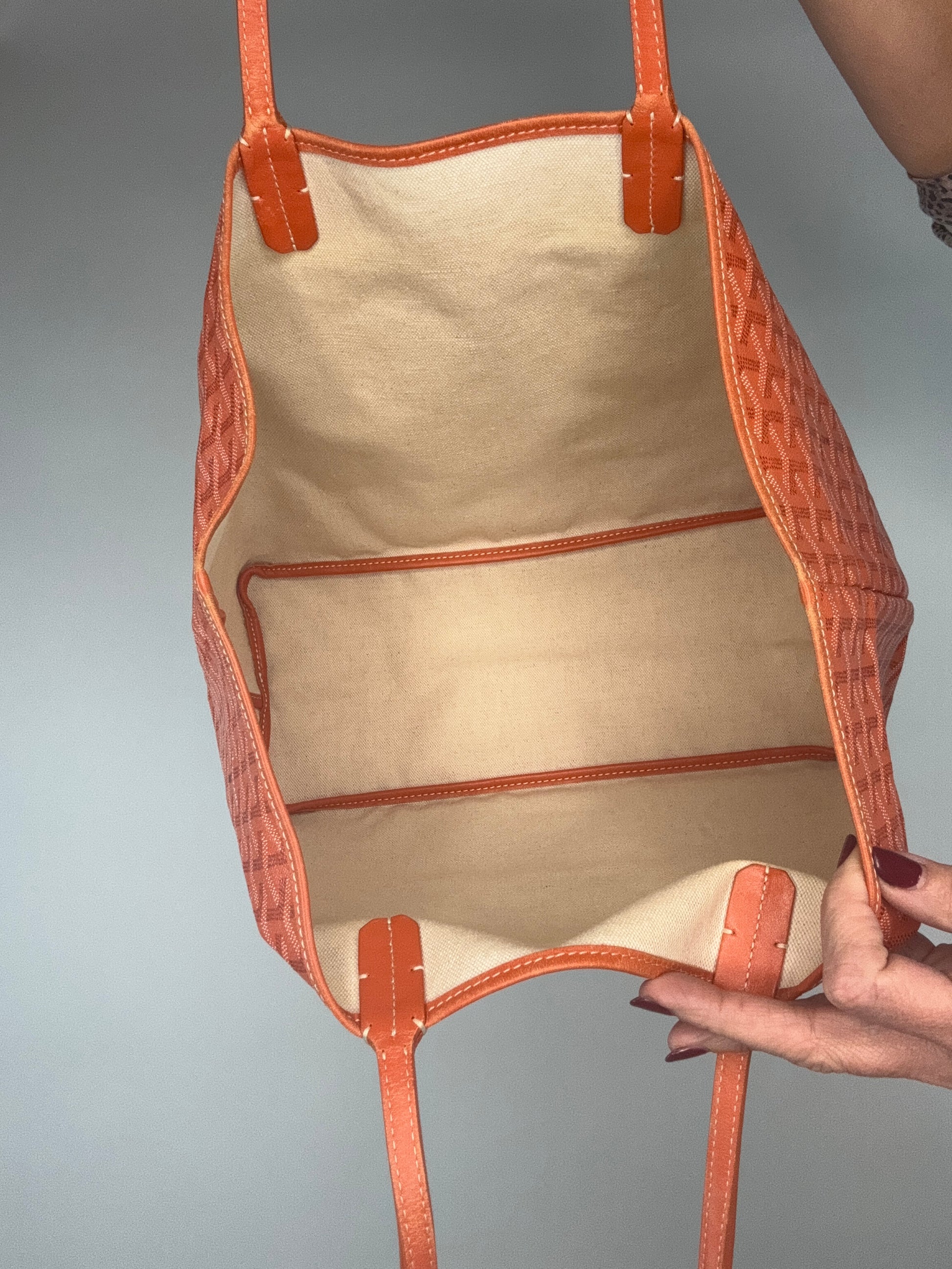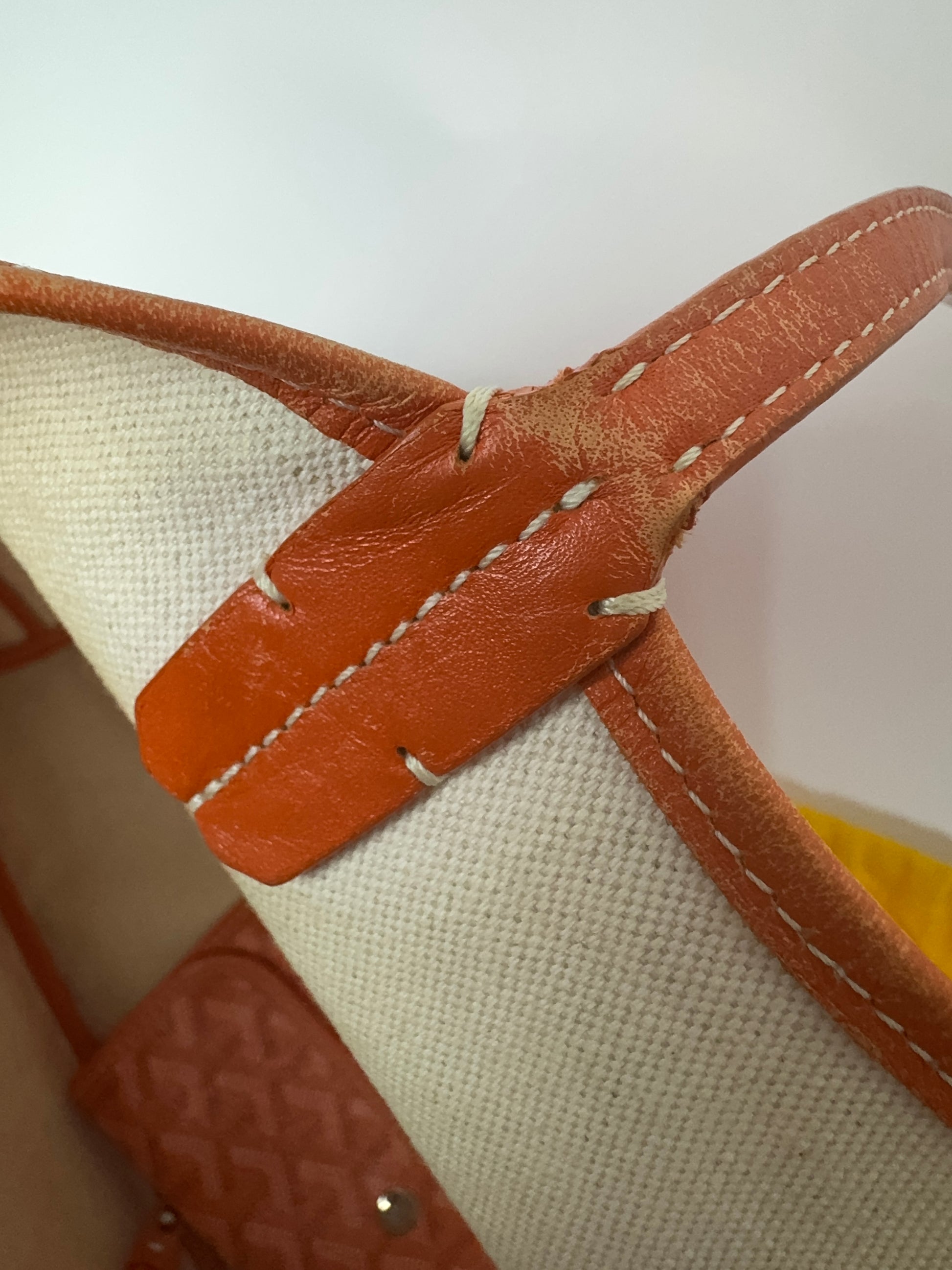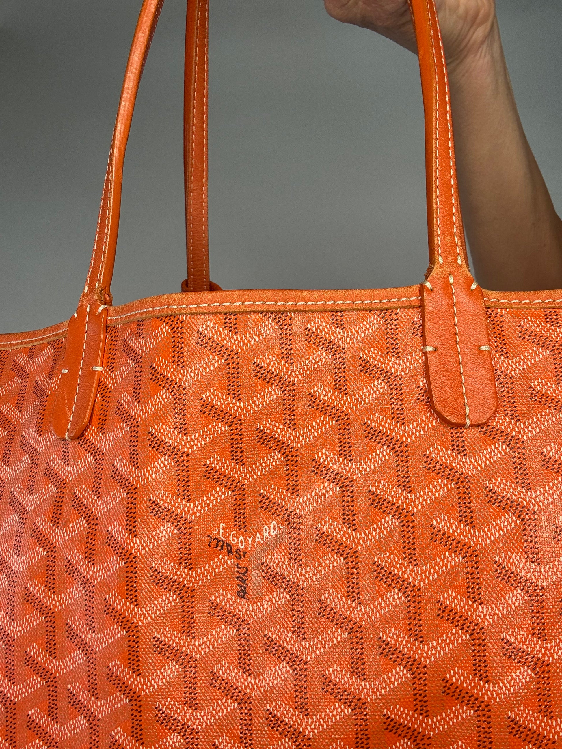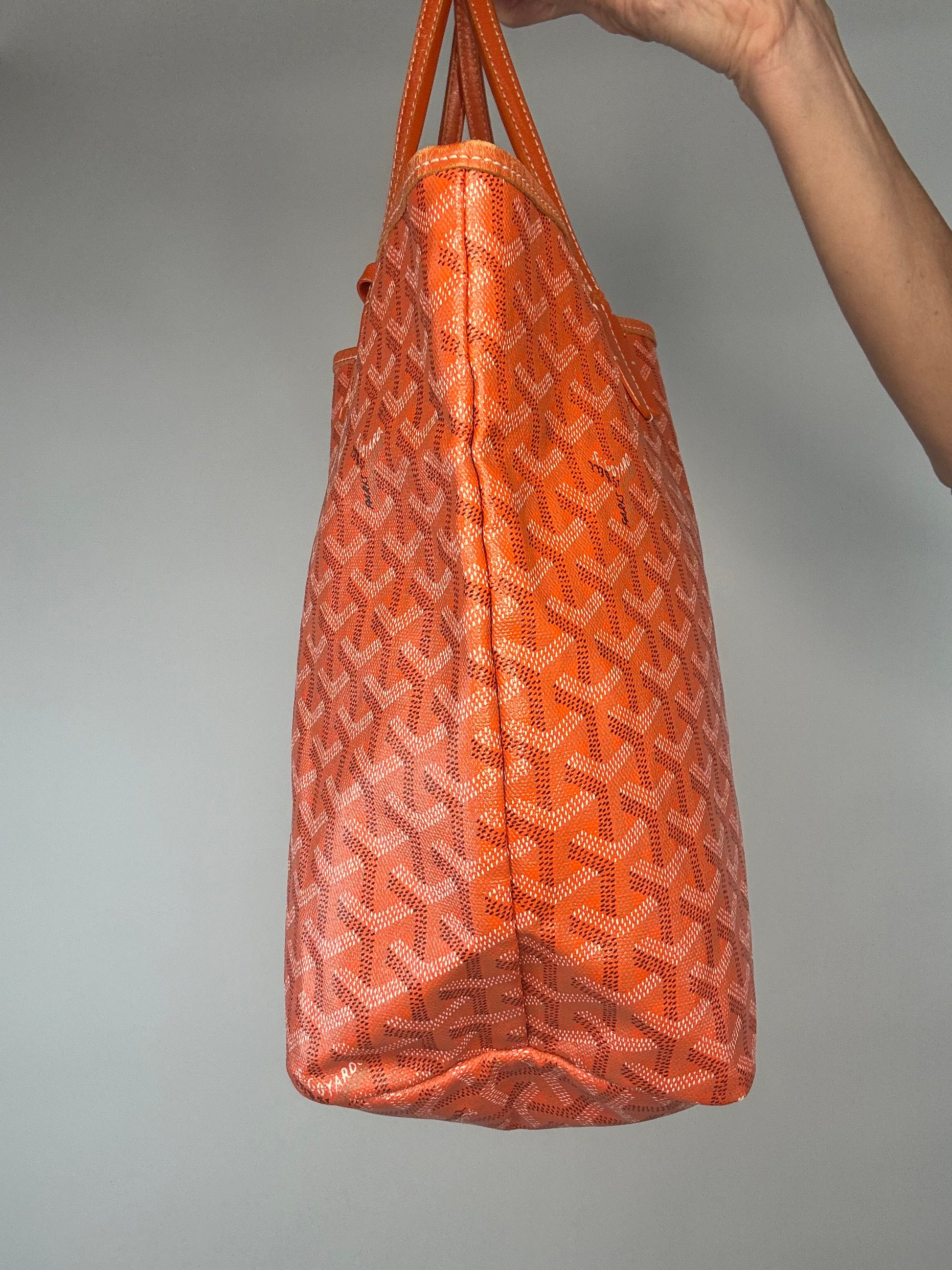 GOYARD Saint Louis PM Tote Bag Orange White Black Coated Canvas Leather