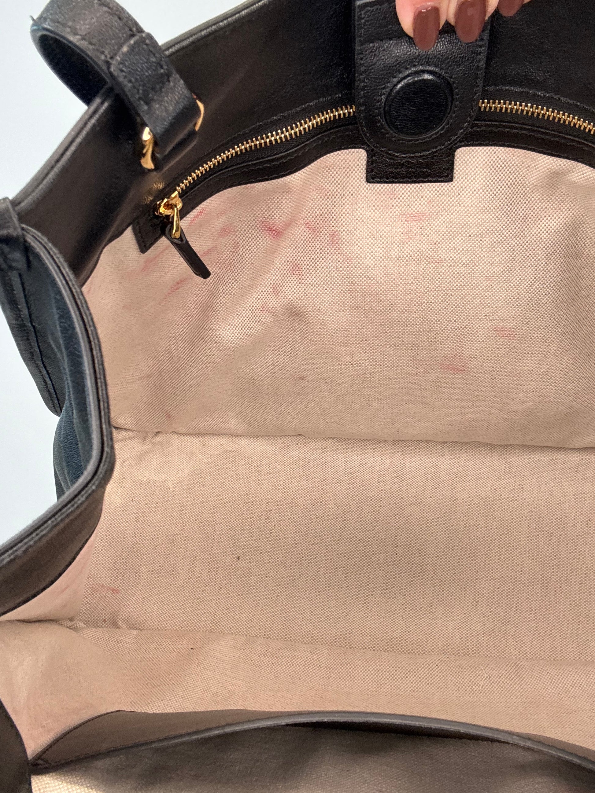Black Leather preowned horsebit tote is perfect for everyday, or travel, easy magnetic closure, roomy enough for all the daily essentials and your laptop! Timeless chic.