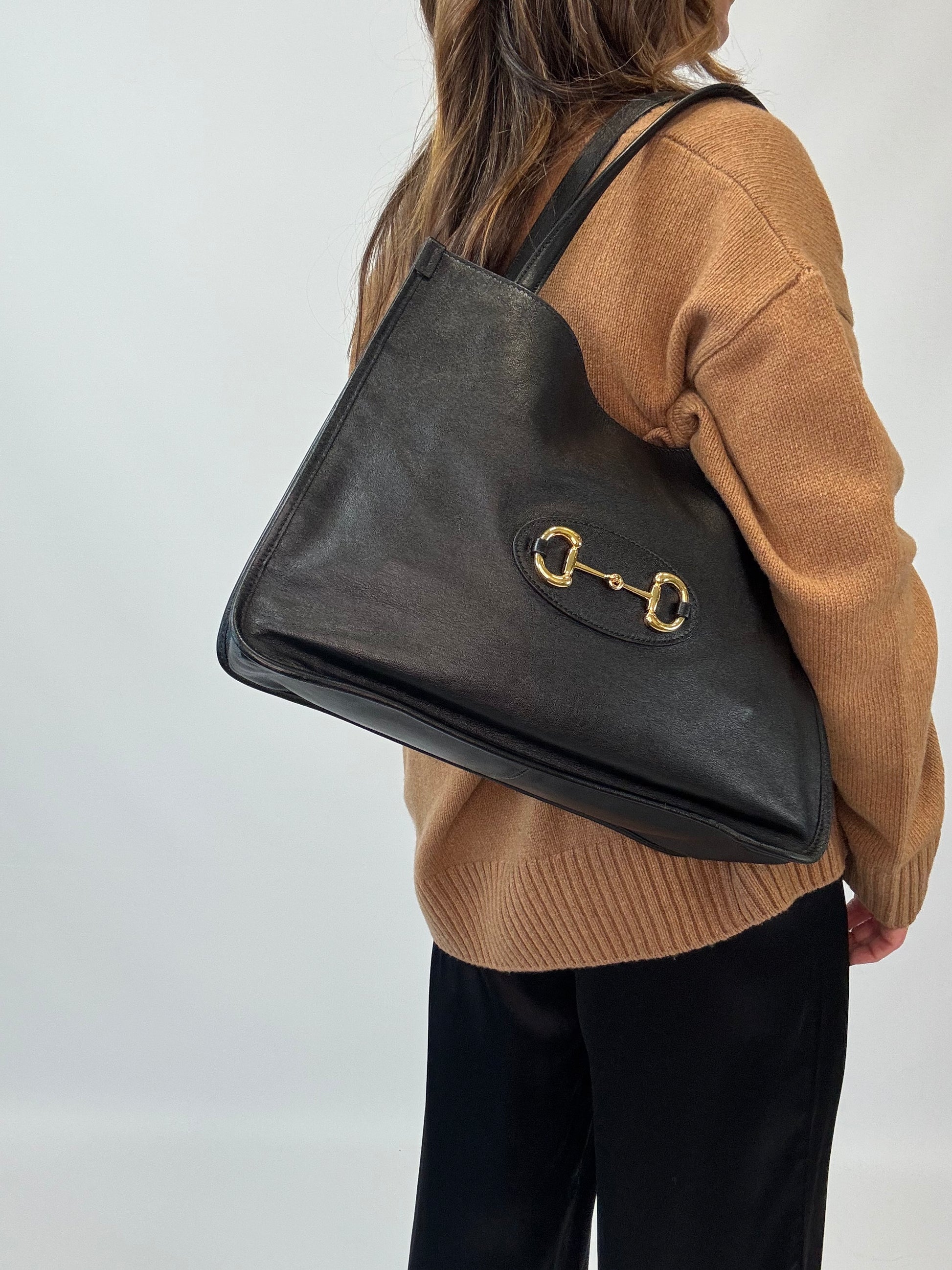 Gucci Horsebit 1955 Leather Tote - Black