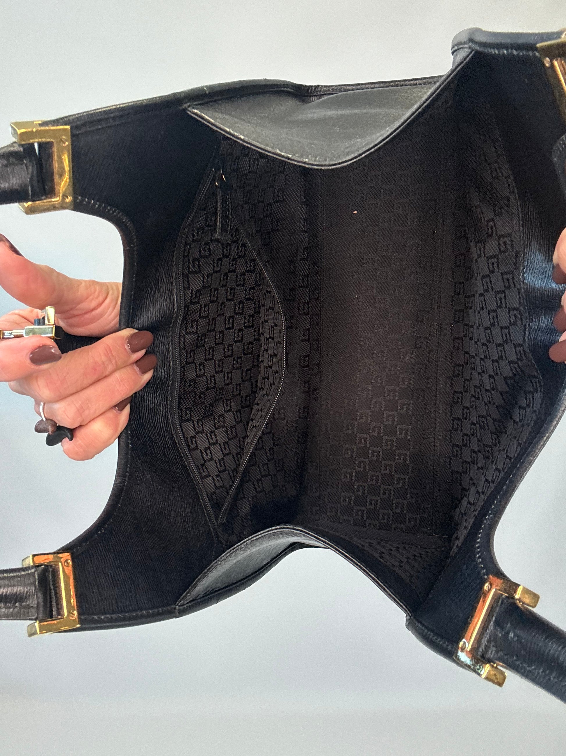 Gucci Jackie Bardot Leather Shoulder Bag - Black