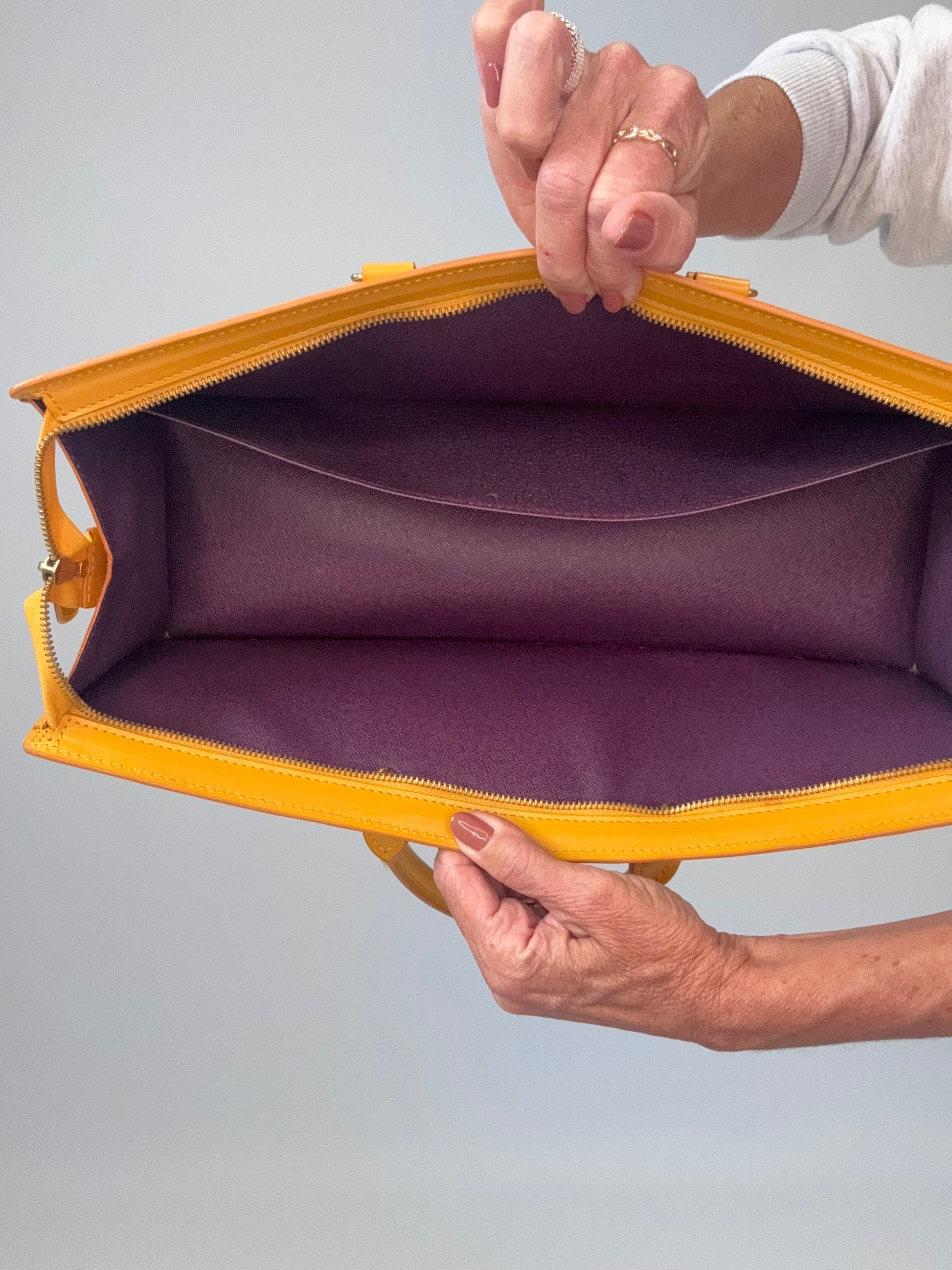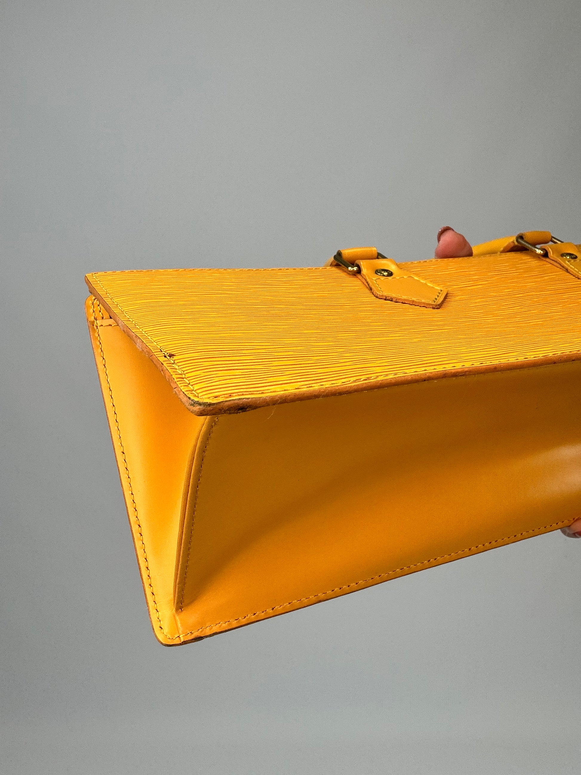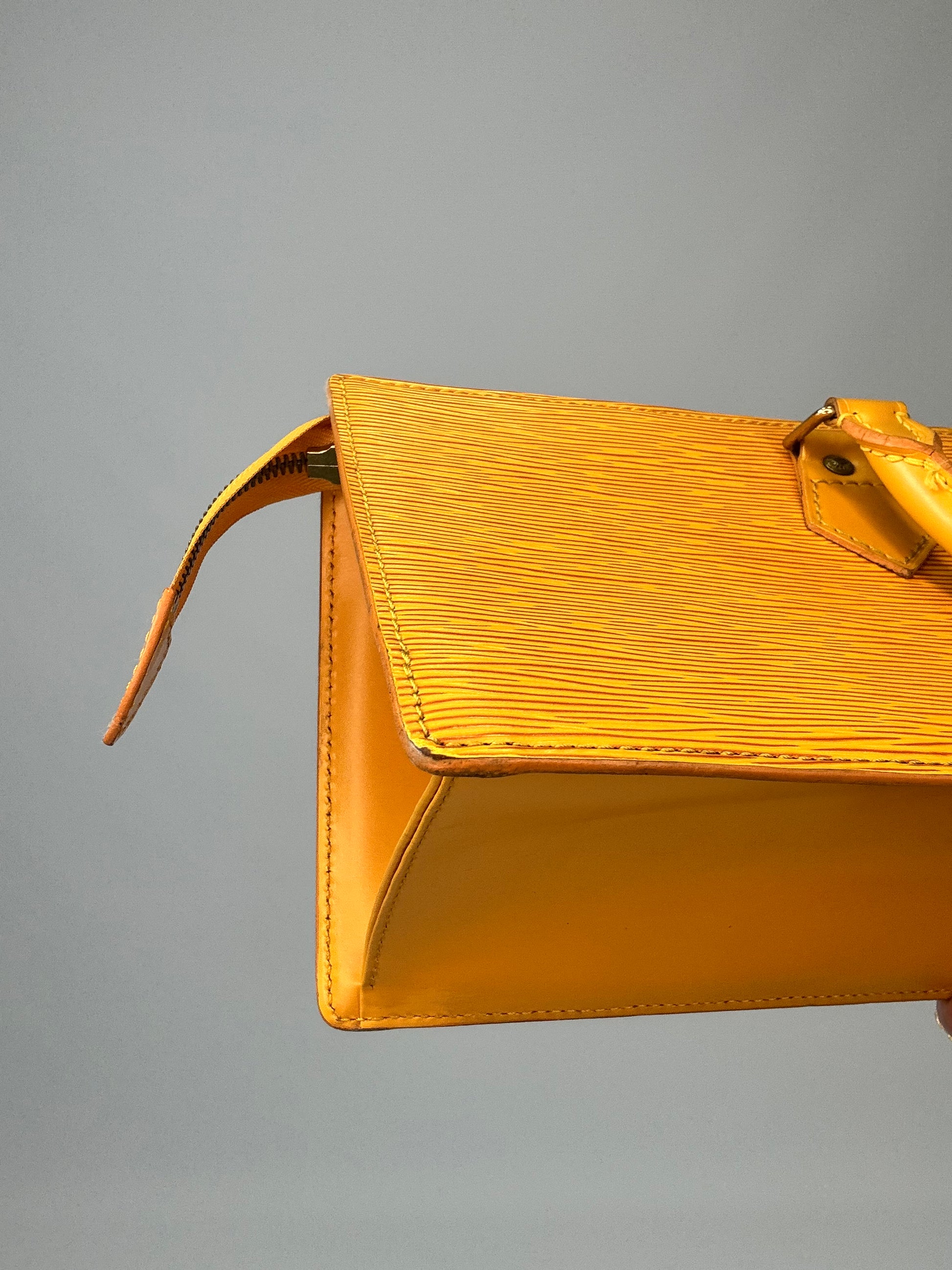 This preowned Louis Vuitton Epi Triangle Sac is the original east to west bag! Designed in the signature epi leather, this beautiful handbag delivers that pop of color to really make a statement! Plenty of room to fit all your everyday essentials and more! Wear any season for a chic look.