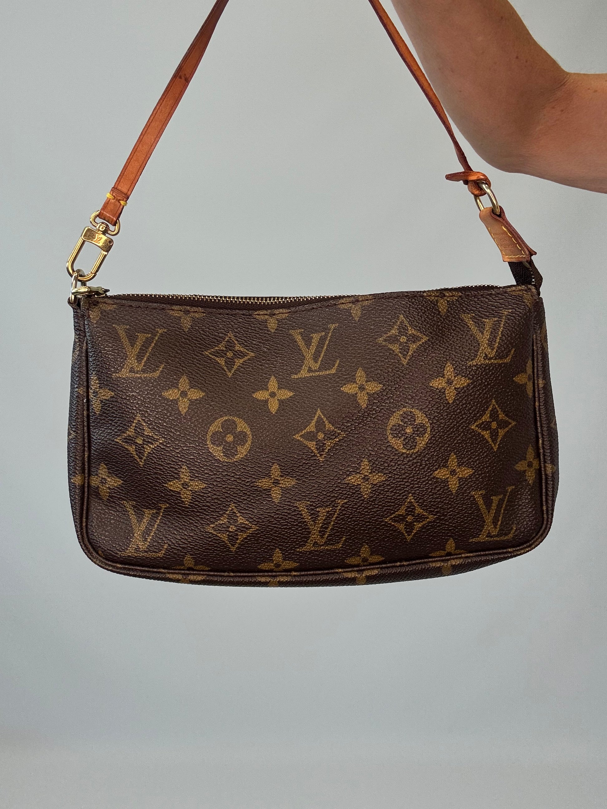 The Y2K perfect design bag, Wear as a shoulder bag or wristlet, can be worn with a crossbody strap. Fits all the small essentials. It's the classic vintage Louis Vuitton that must be in your collection.