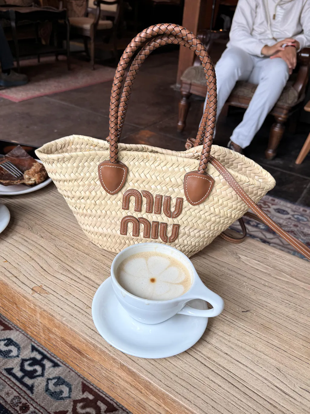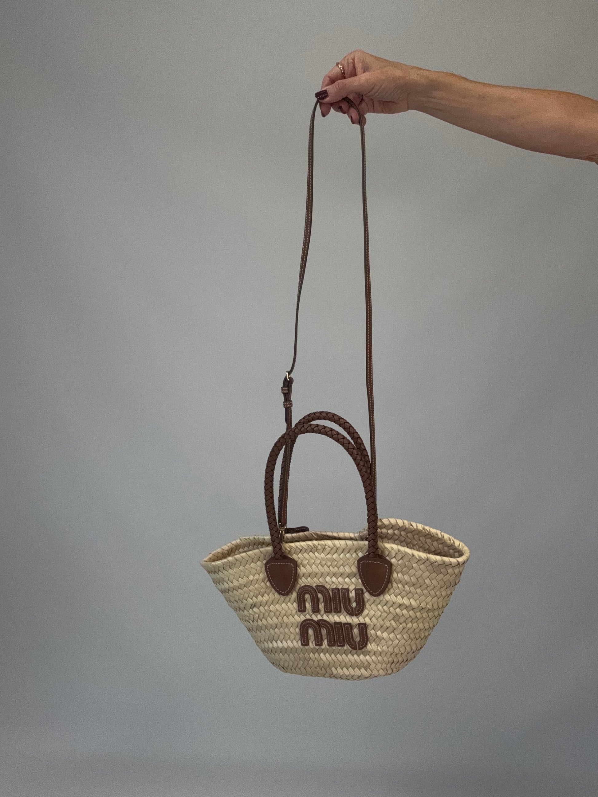 Miu Miu Logo Patch Raffia Tote Bag