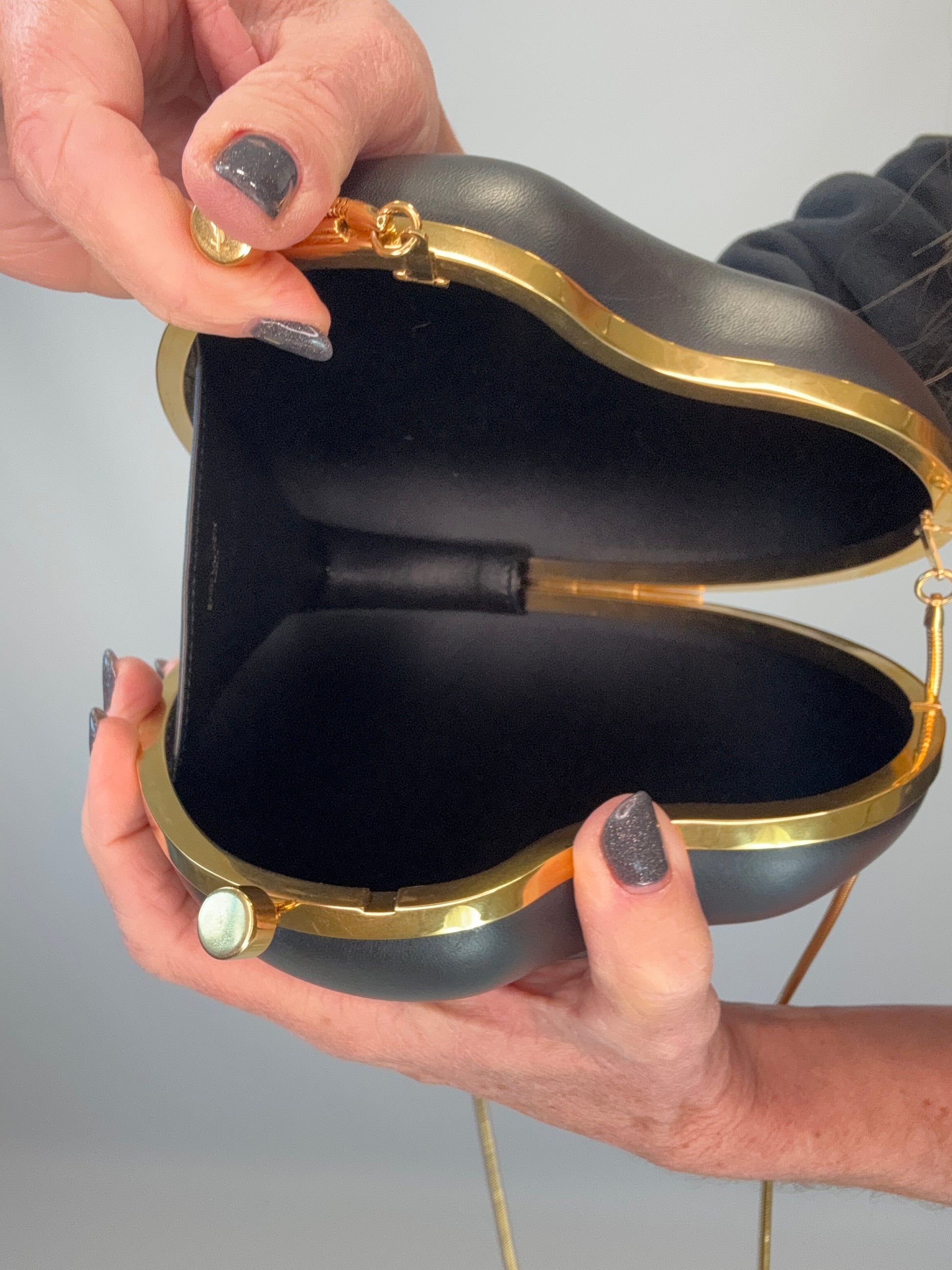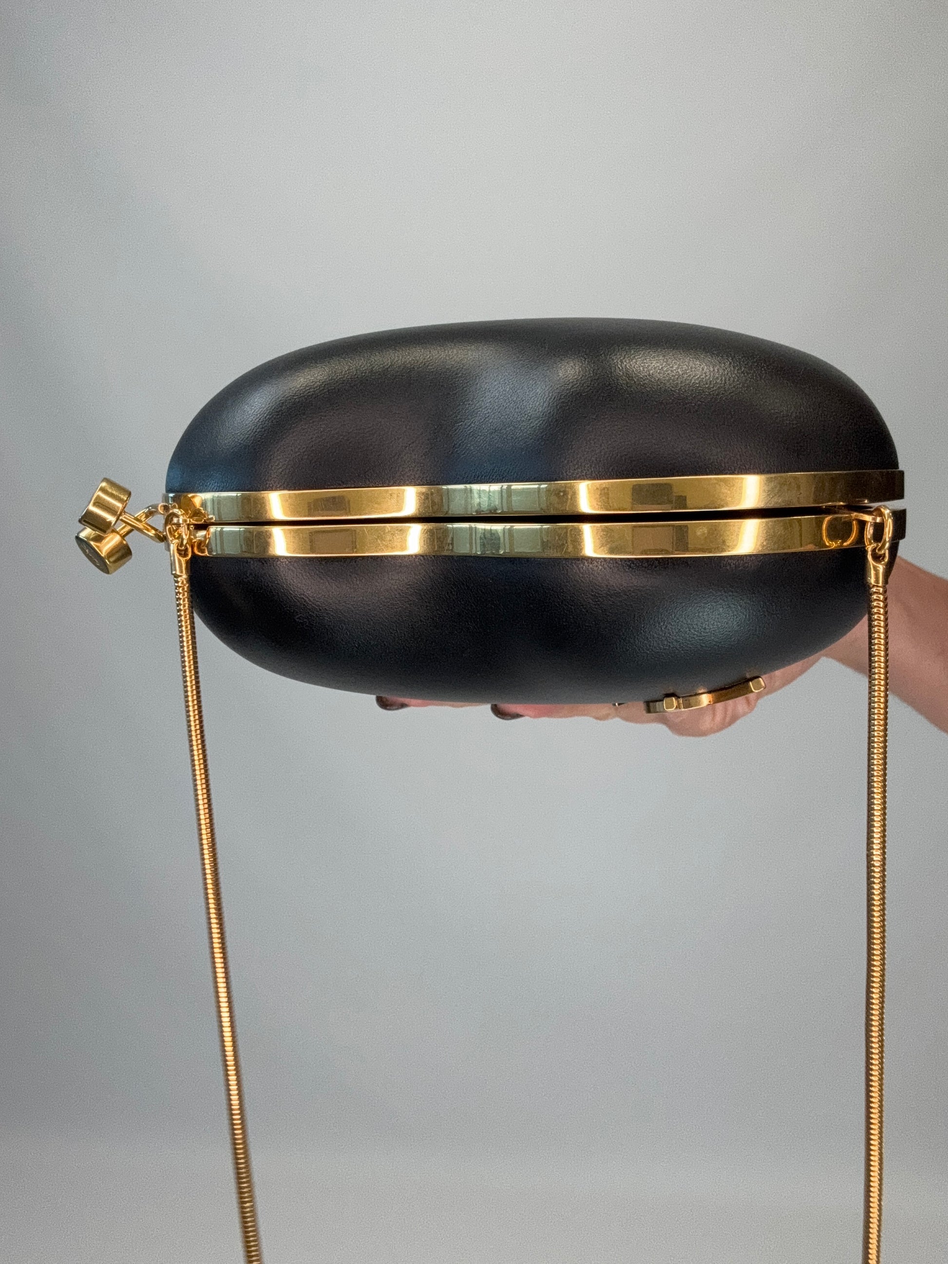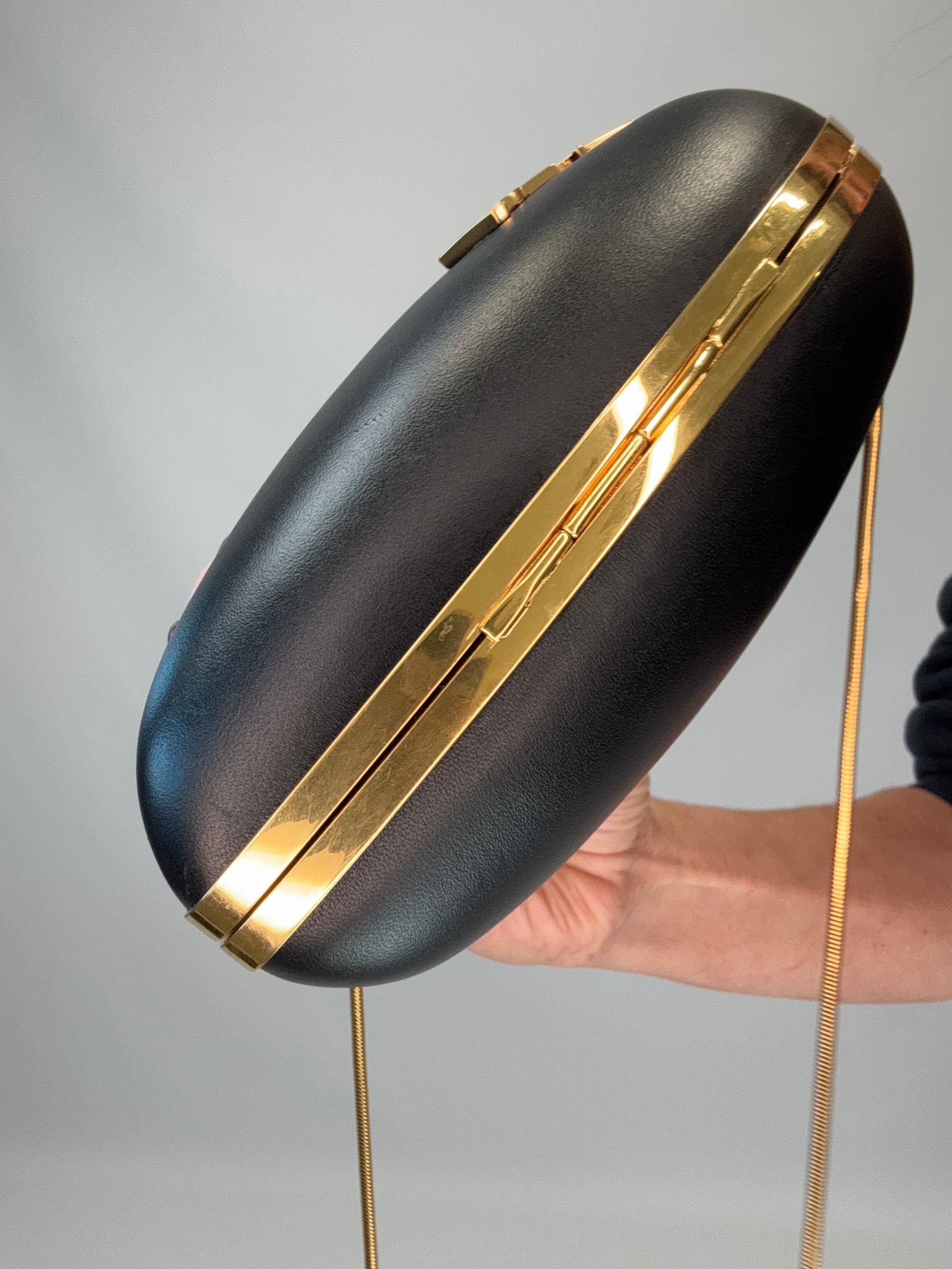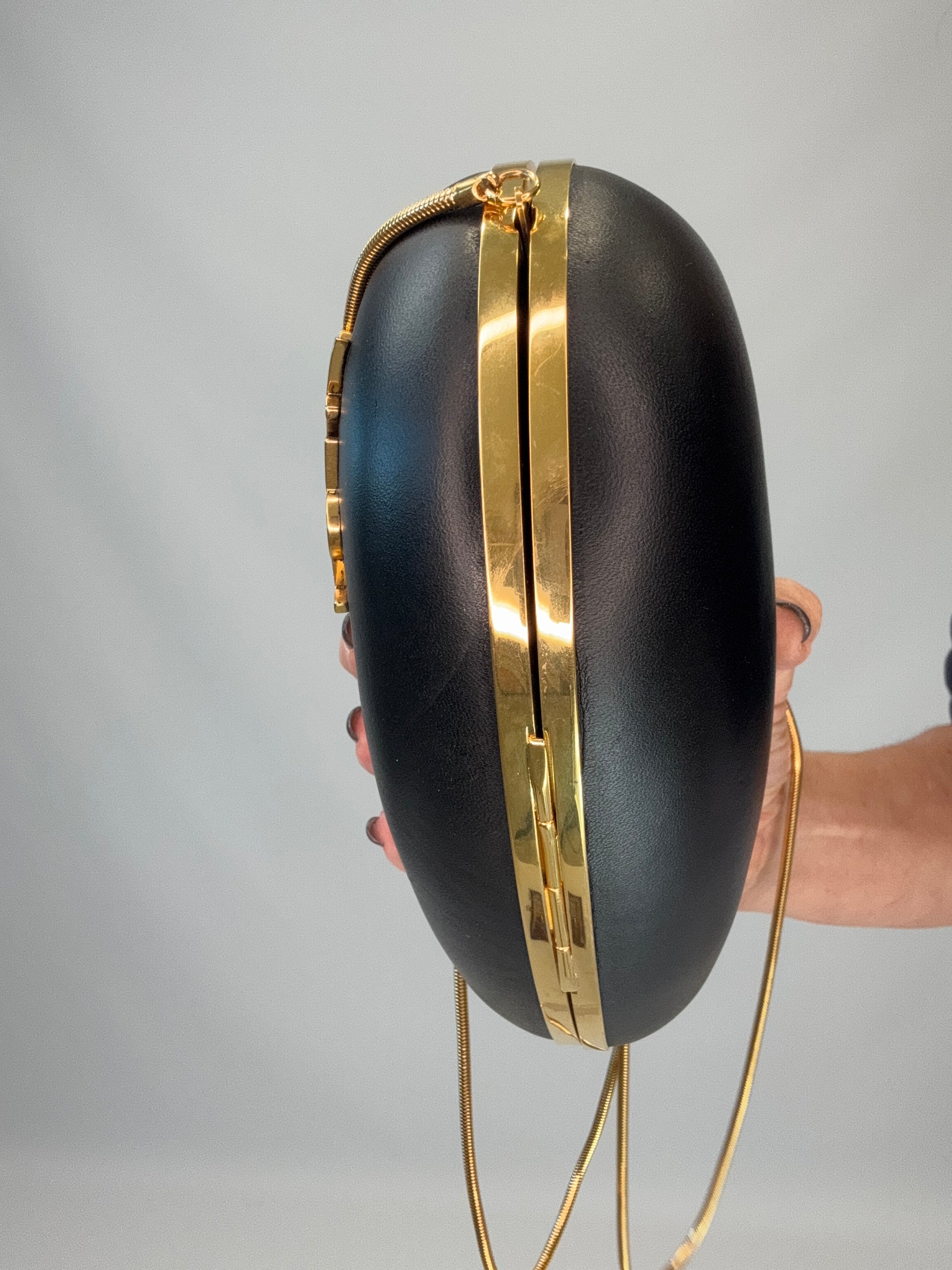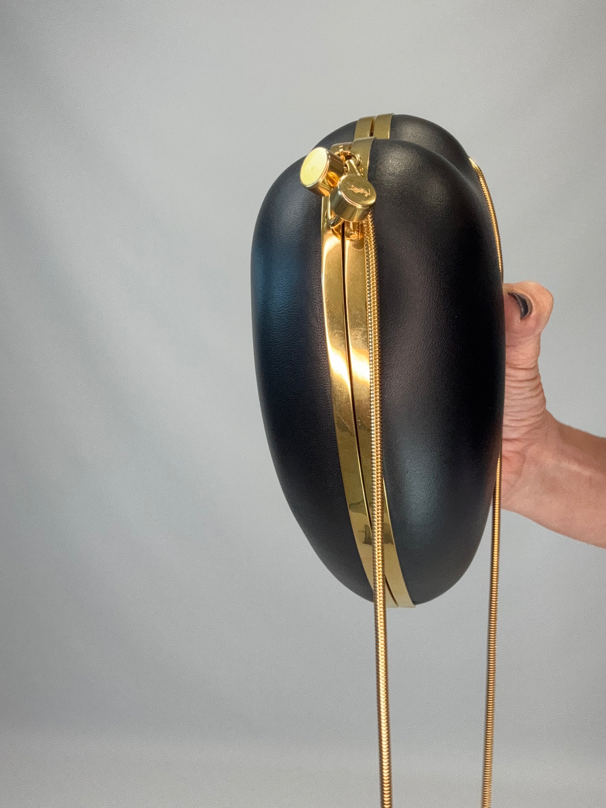 Playful chic kiss lock YSL crossbody leather bag, great for dressy , or casual looks, fits pro phone, small essentials and more. Features gold snake chain for an elegant vibe.