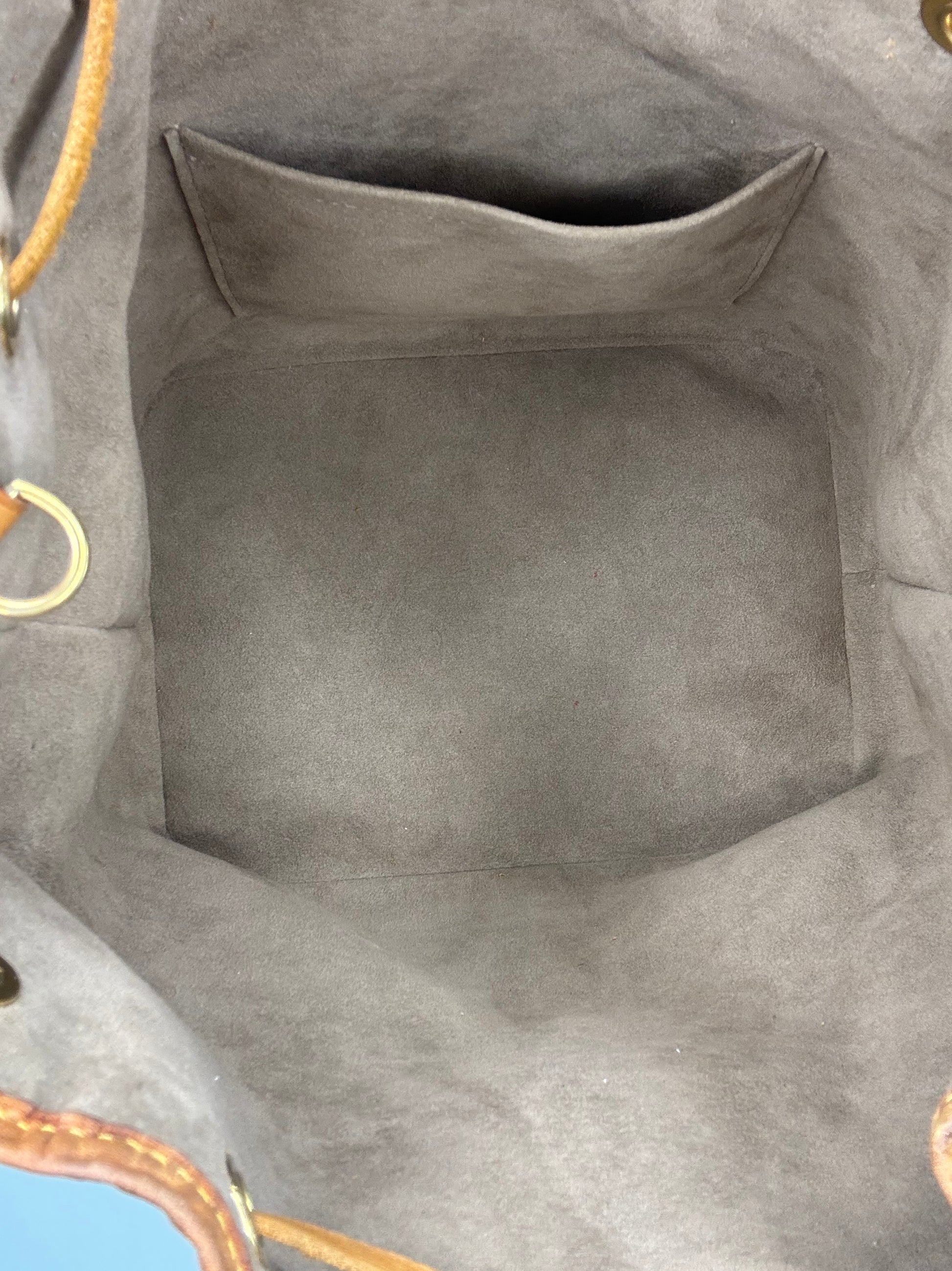 Note wear on cowhide no tears, drawstring has beed replaced original string included , bottom has has slight wear Year 2008 7.5/10 Entrupy Verified